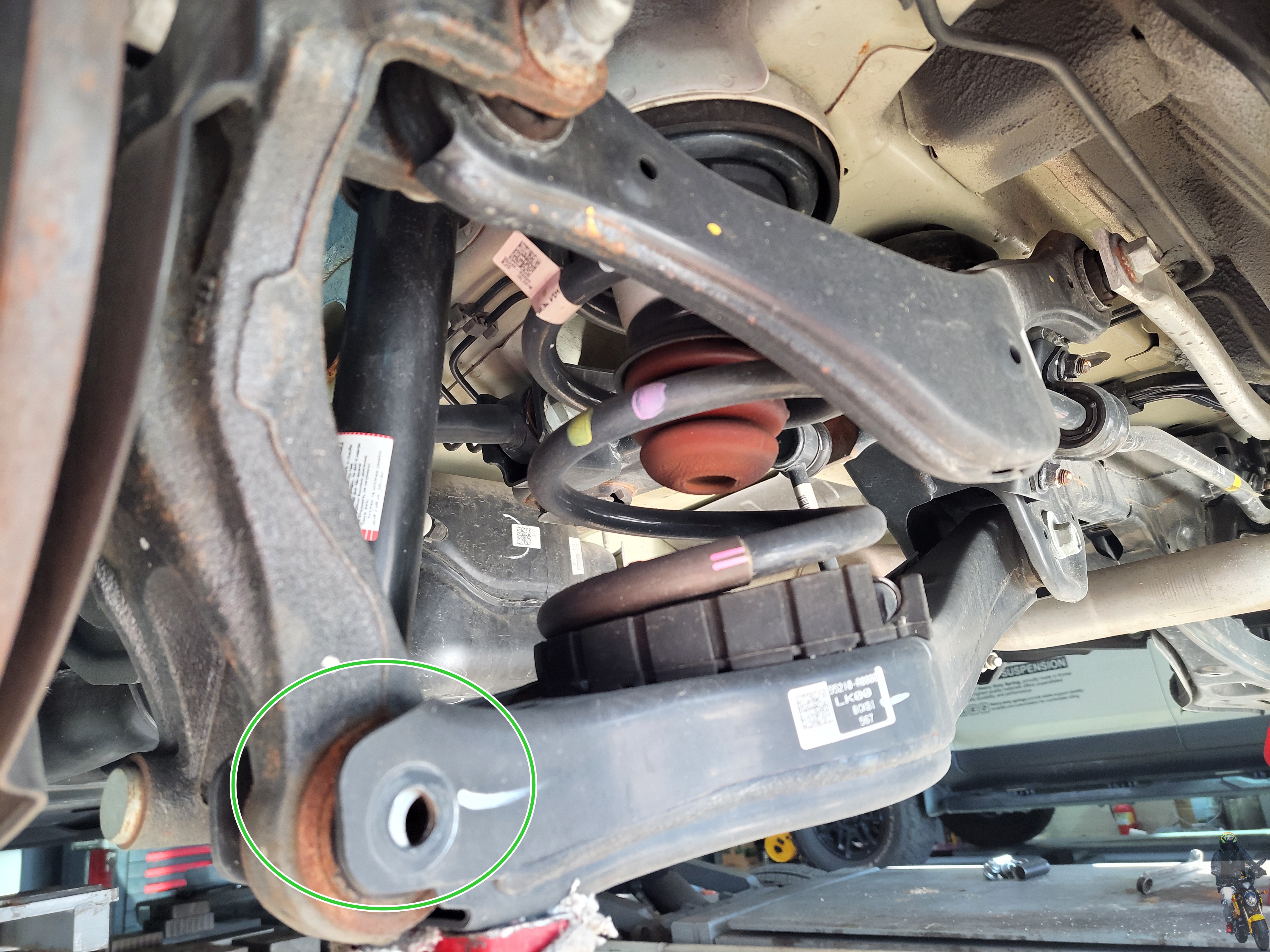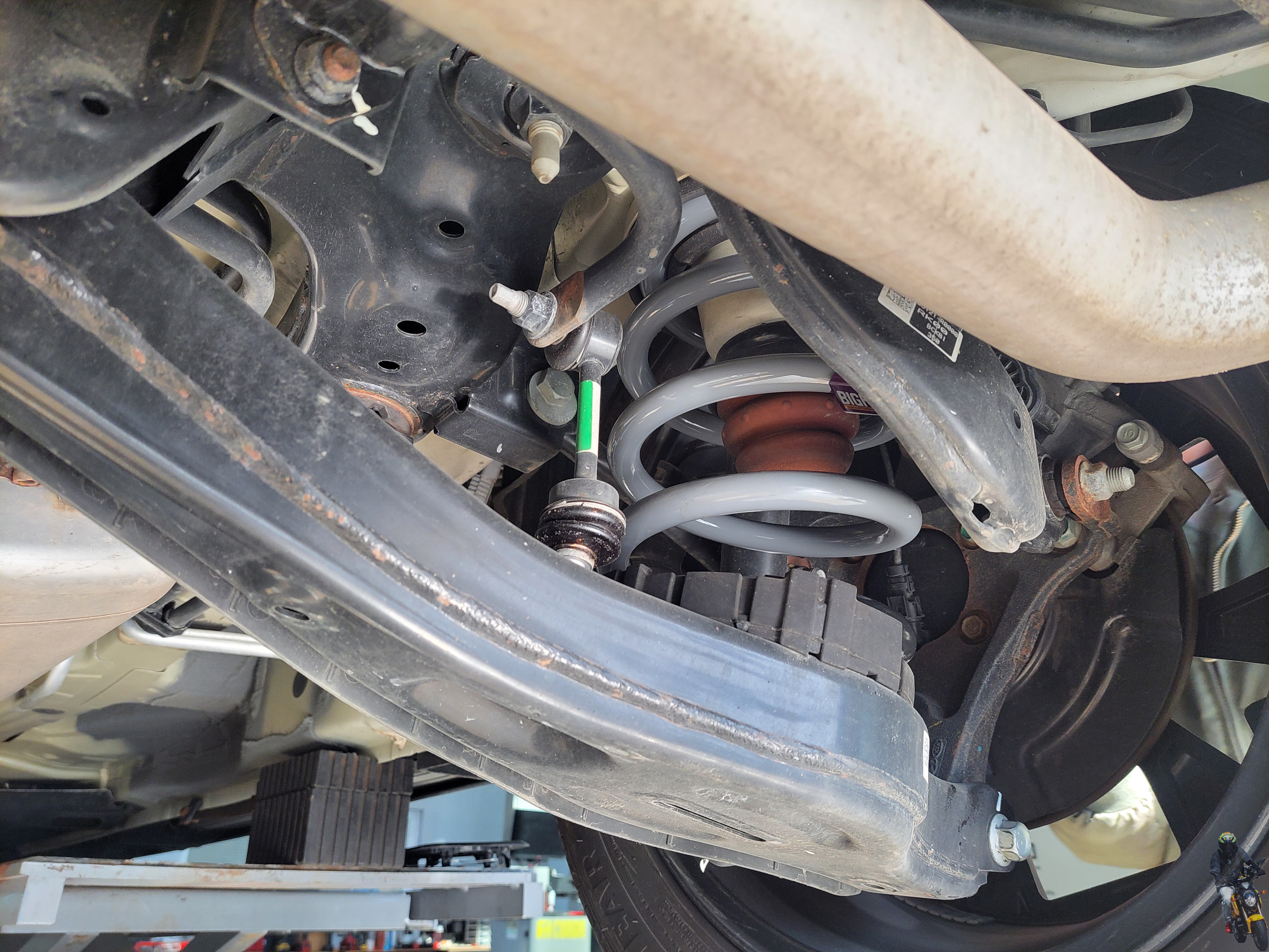 리어 스테빌라이저 링크를 장착하기 위해 작업하고 있습니다