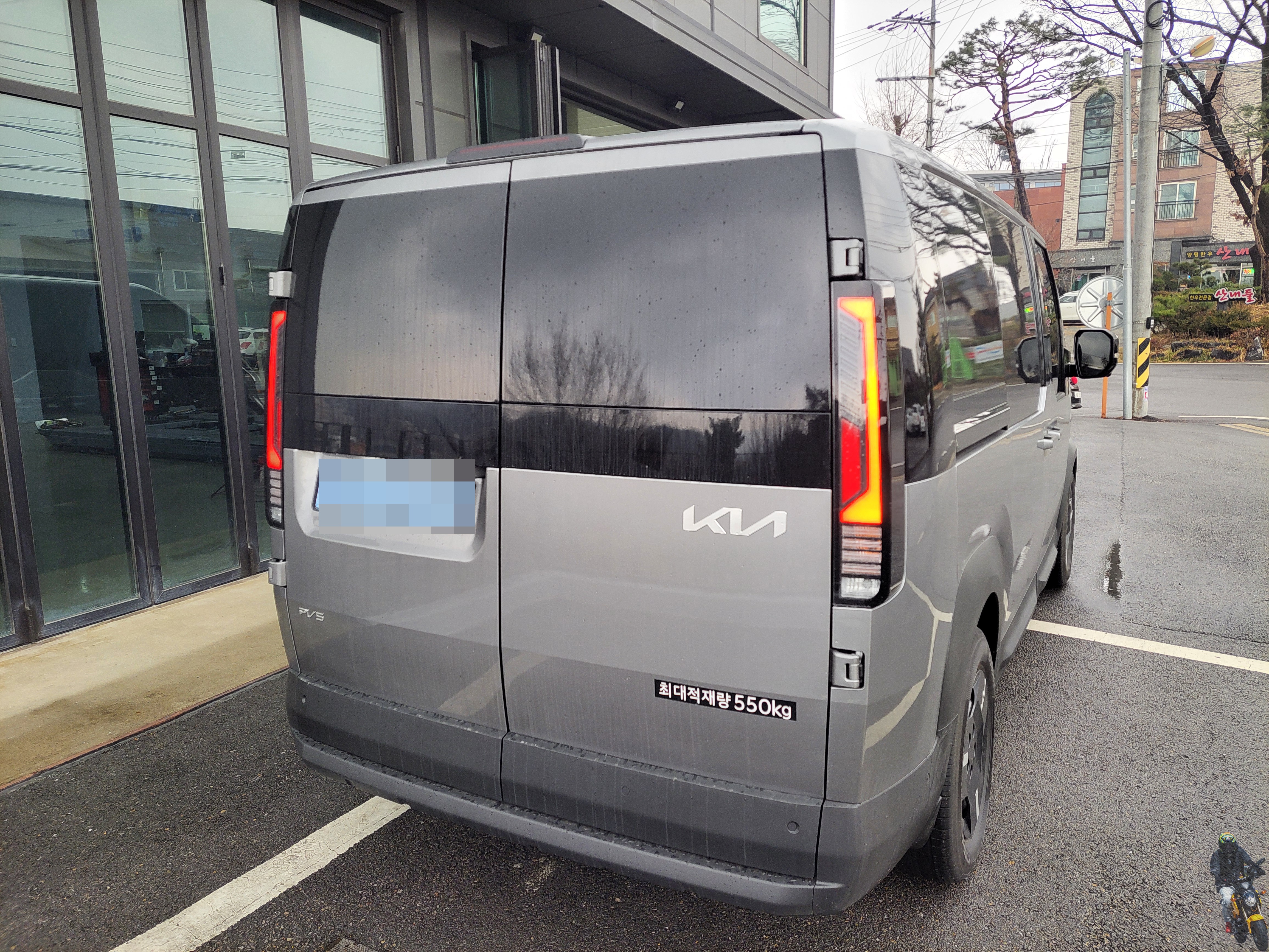 PV5 패신저 모델처럼 검은색 랩핑이 되어있는 차량입니다