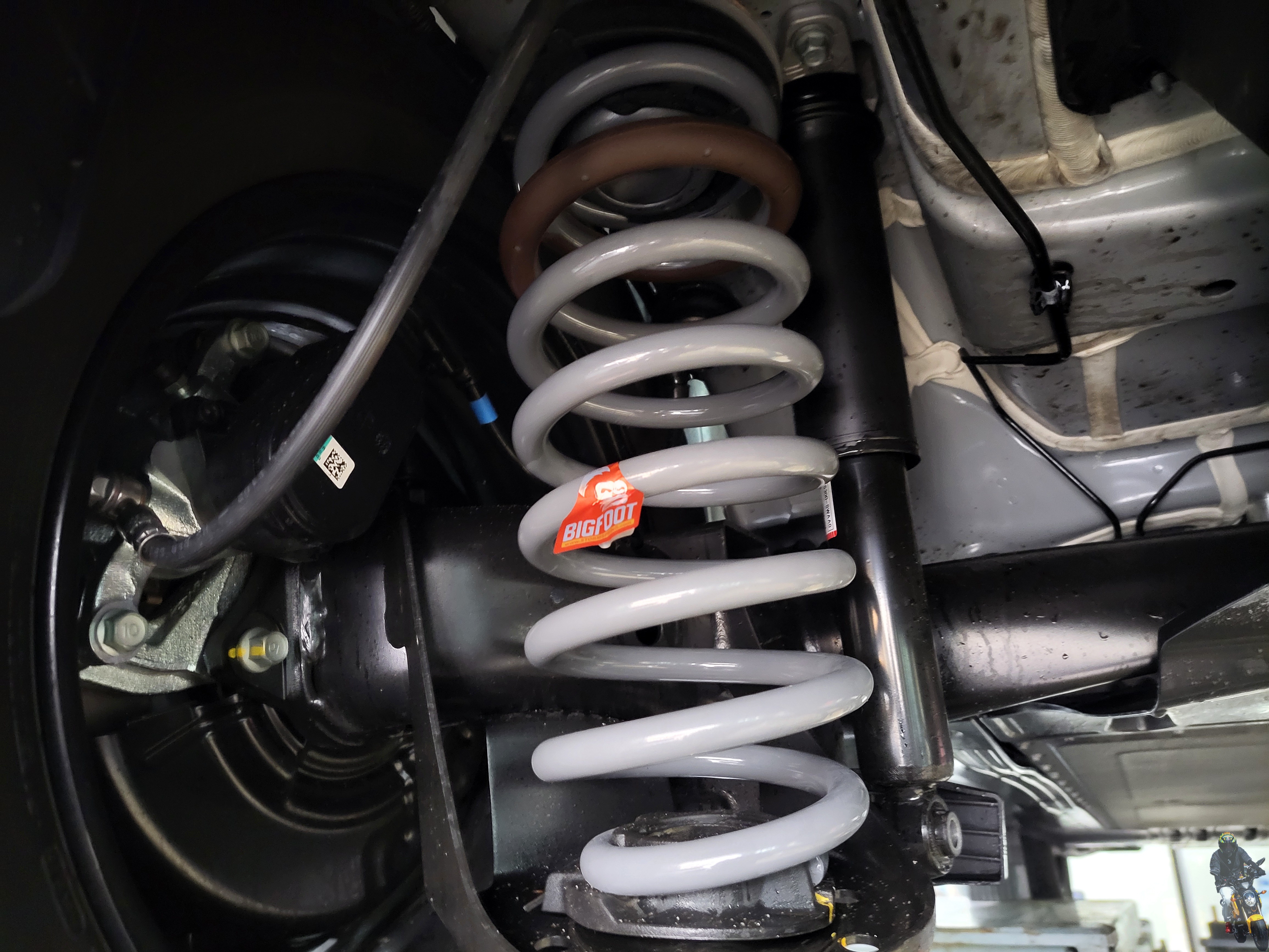 빅풋 1인치 강성스프링을 차량에 장착하였습니다