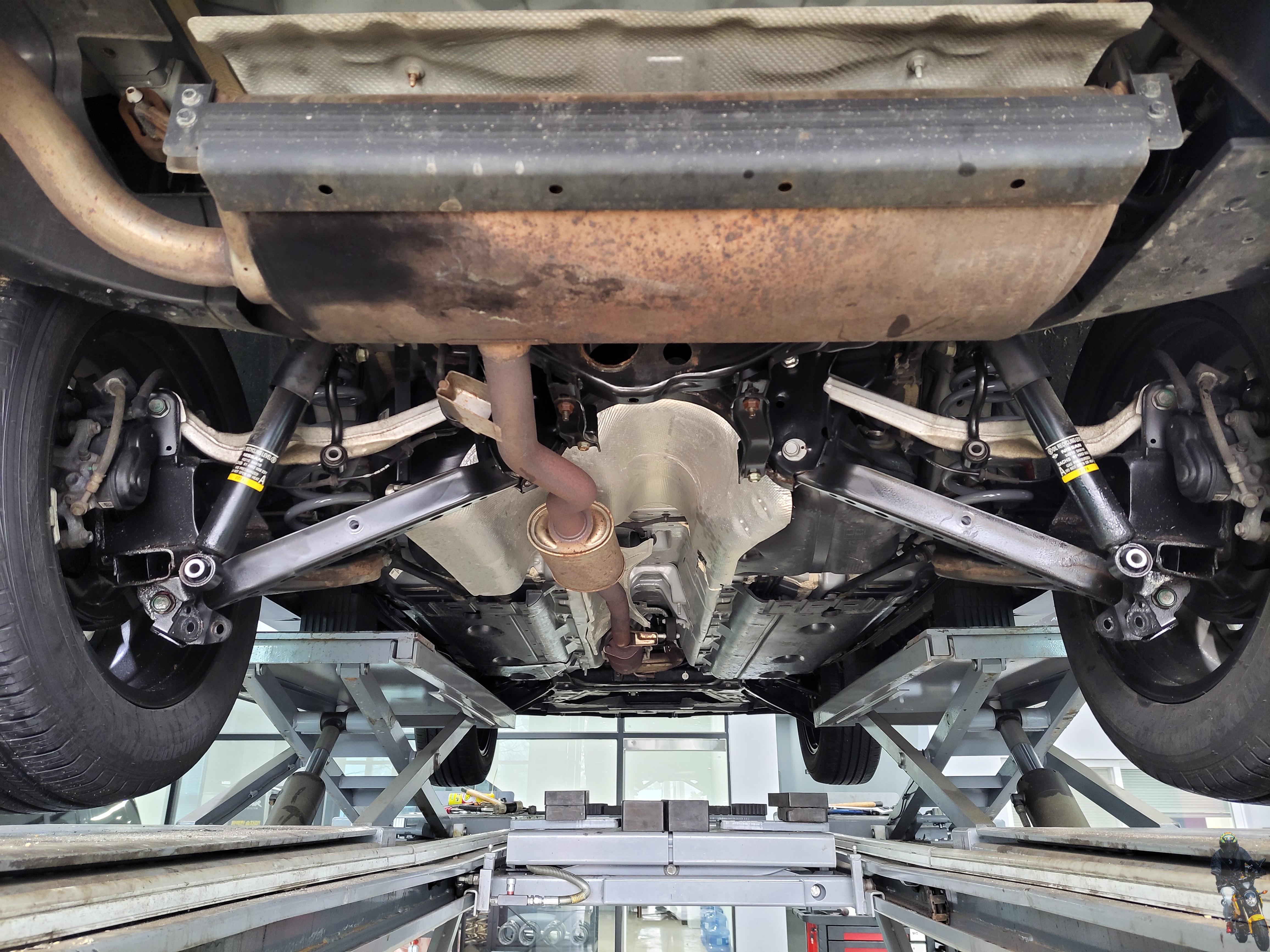 르노 차량들은 이렇게 쇼바가 사선으로 위치하고 있는 것이 특징입니다