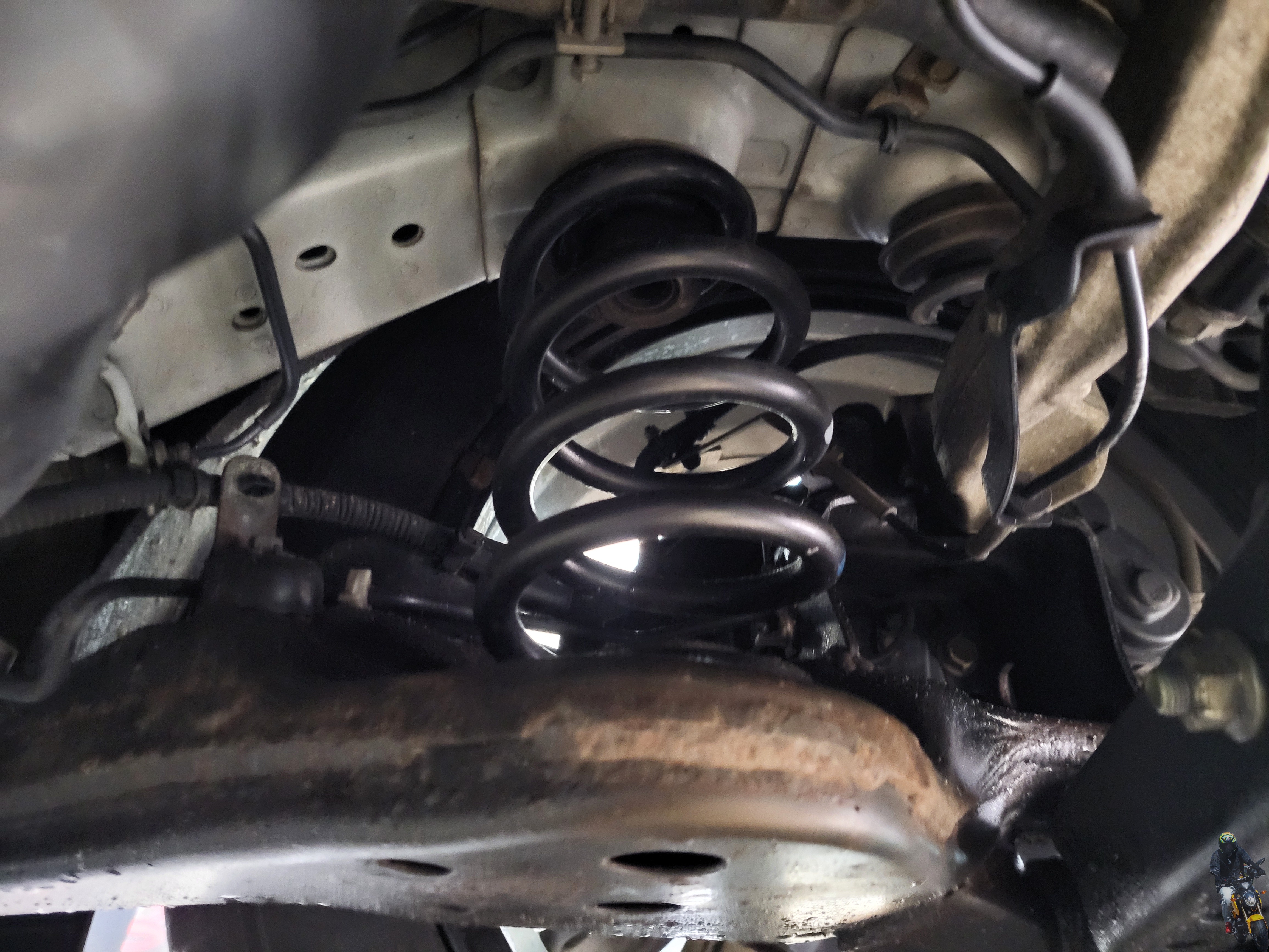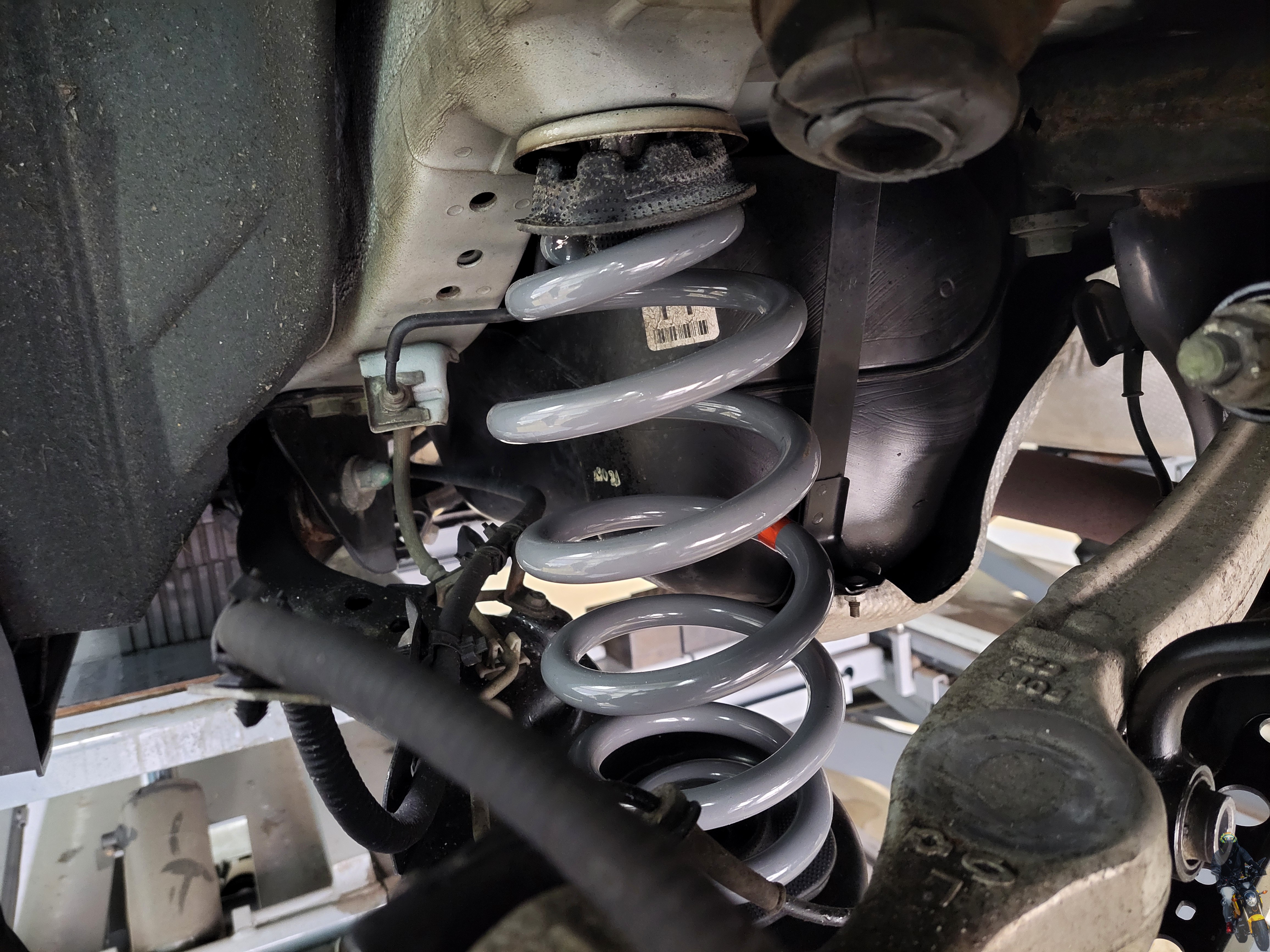 압축한 강성스프링을 차량에 장착하였습니다