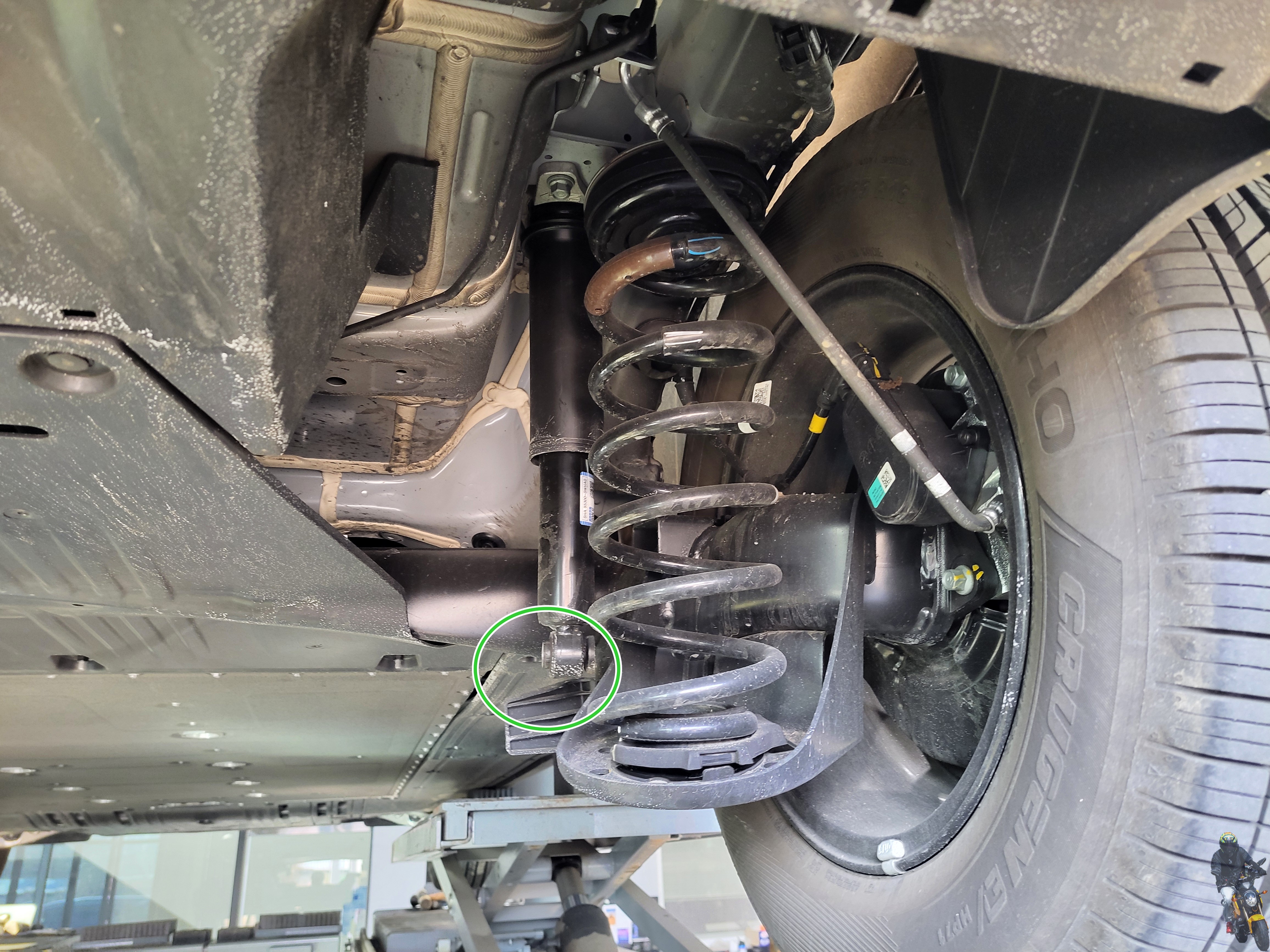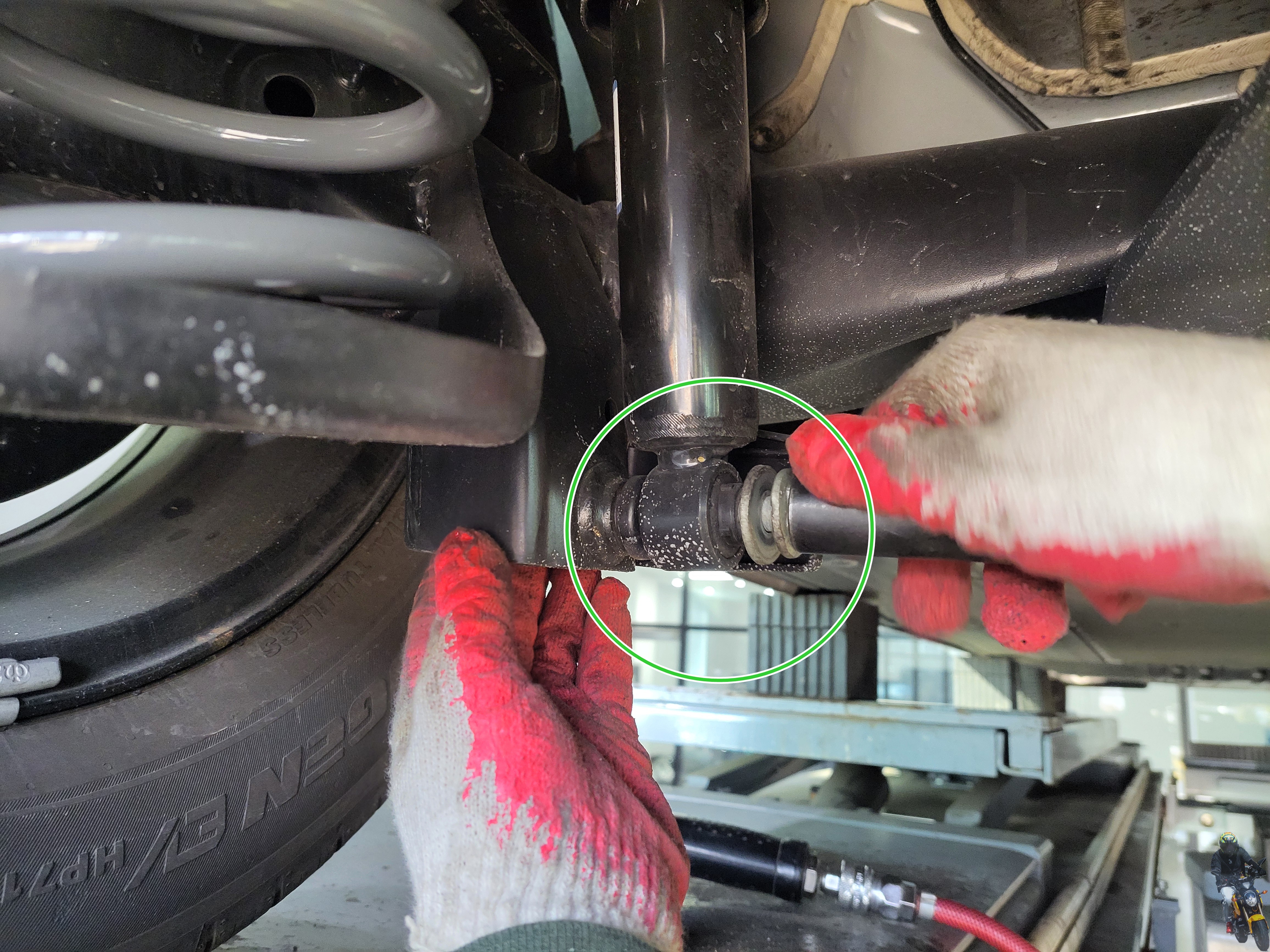 리프트를 내리면서 쇼바 하단 부싱 고정부를 맞췄습니다