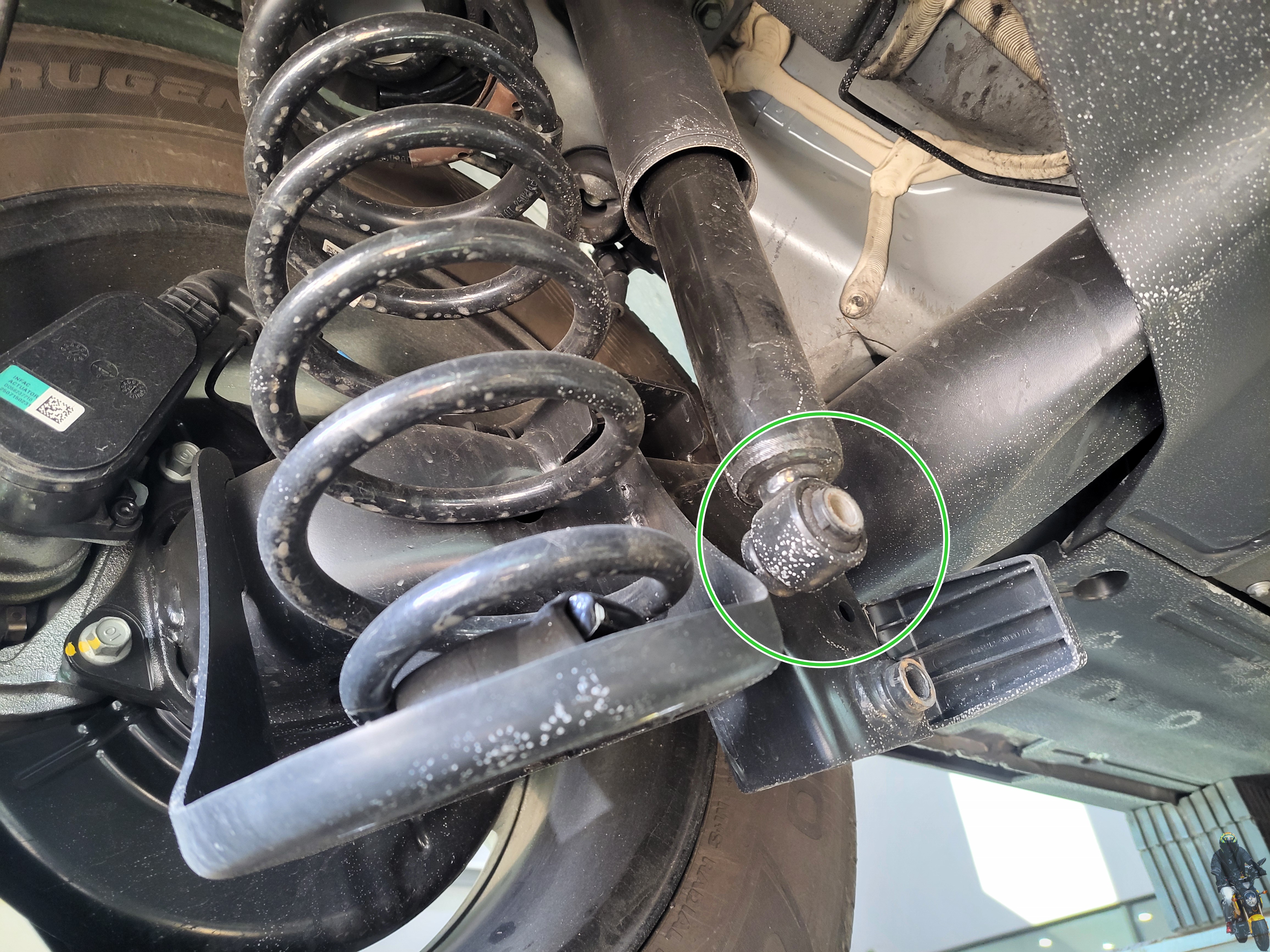 이렇게 리어 쇼바 하단 고정 볼트를 탈거합니다