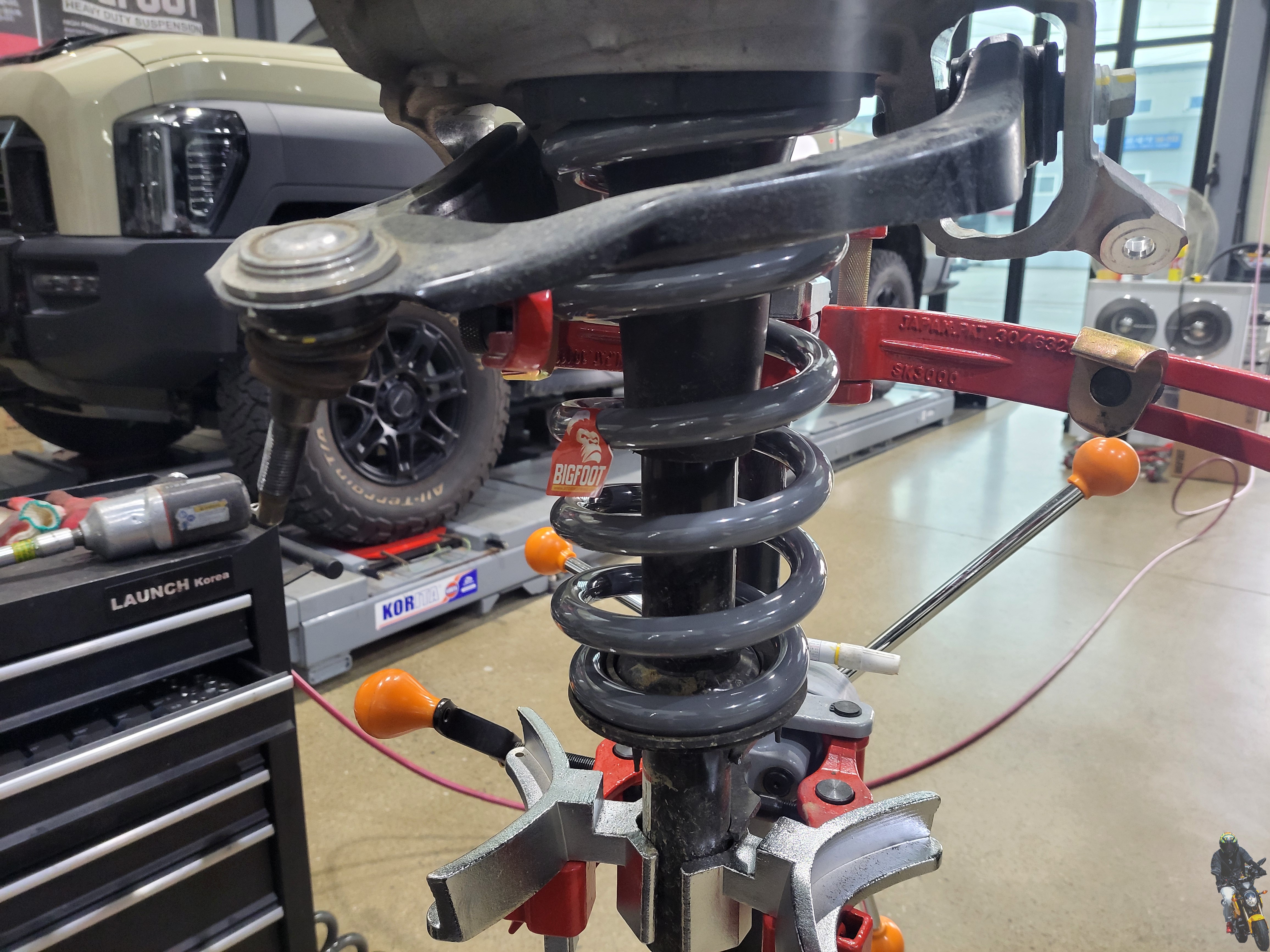 순정스프링을 탈거하고 빅풋 강성스프링을 조립하고 있습니다