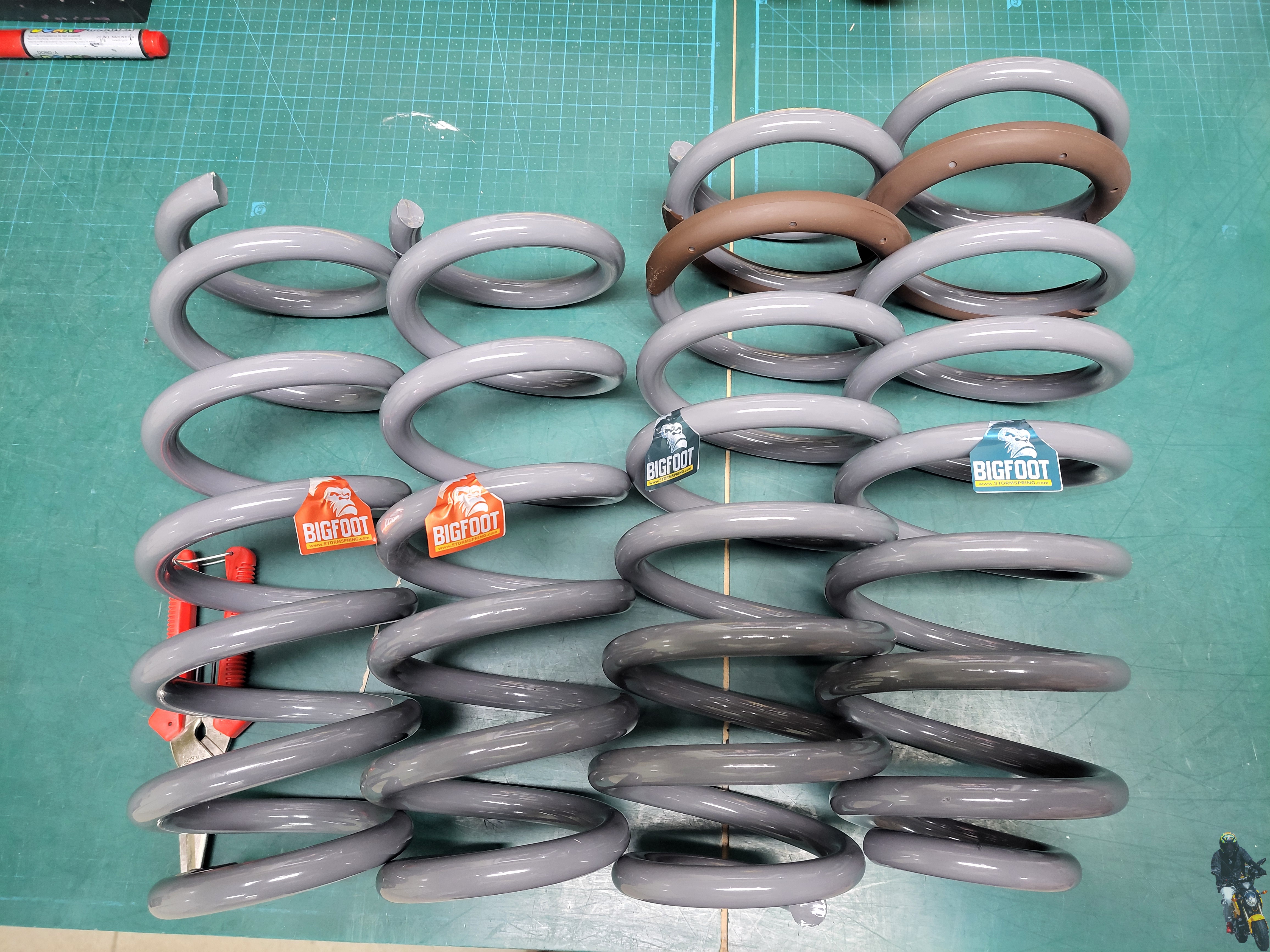 50mm 정도 상승하는 스프링과 스프링을 압축할 장비를 준비합니다