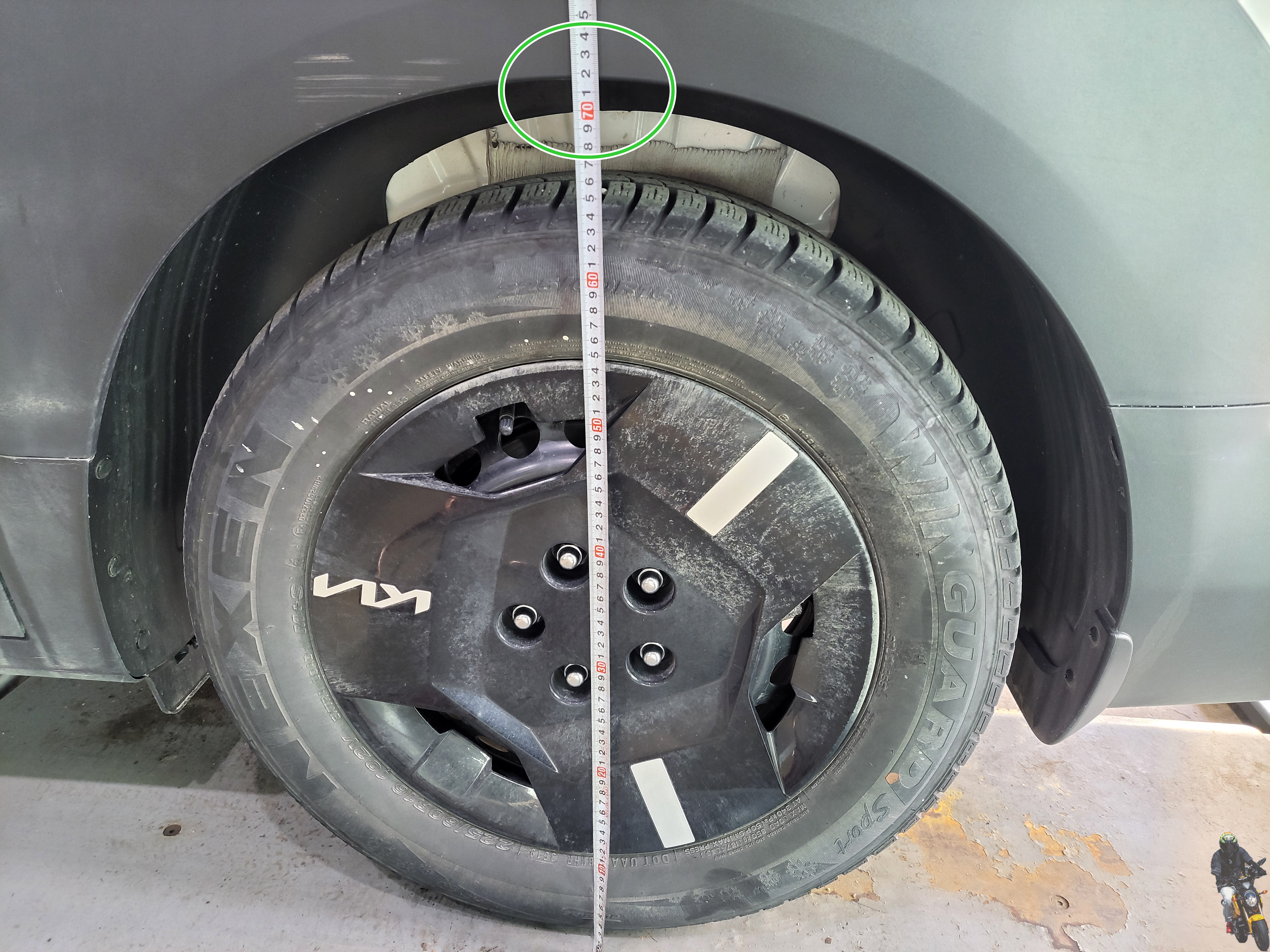 PV5차량의 리어 타이어 안쪽을 보면 타이어와 차체의 여유 공간이