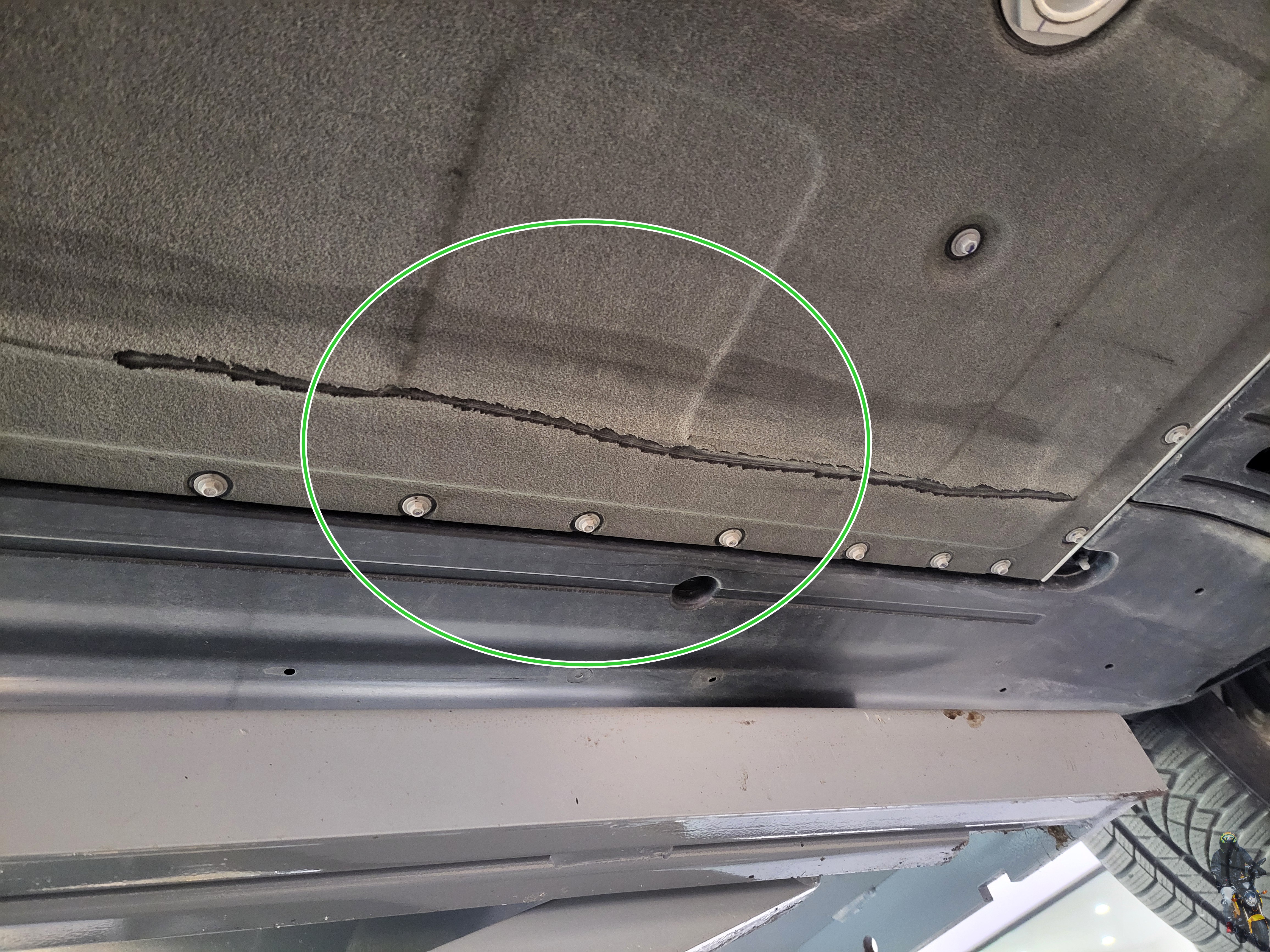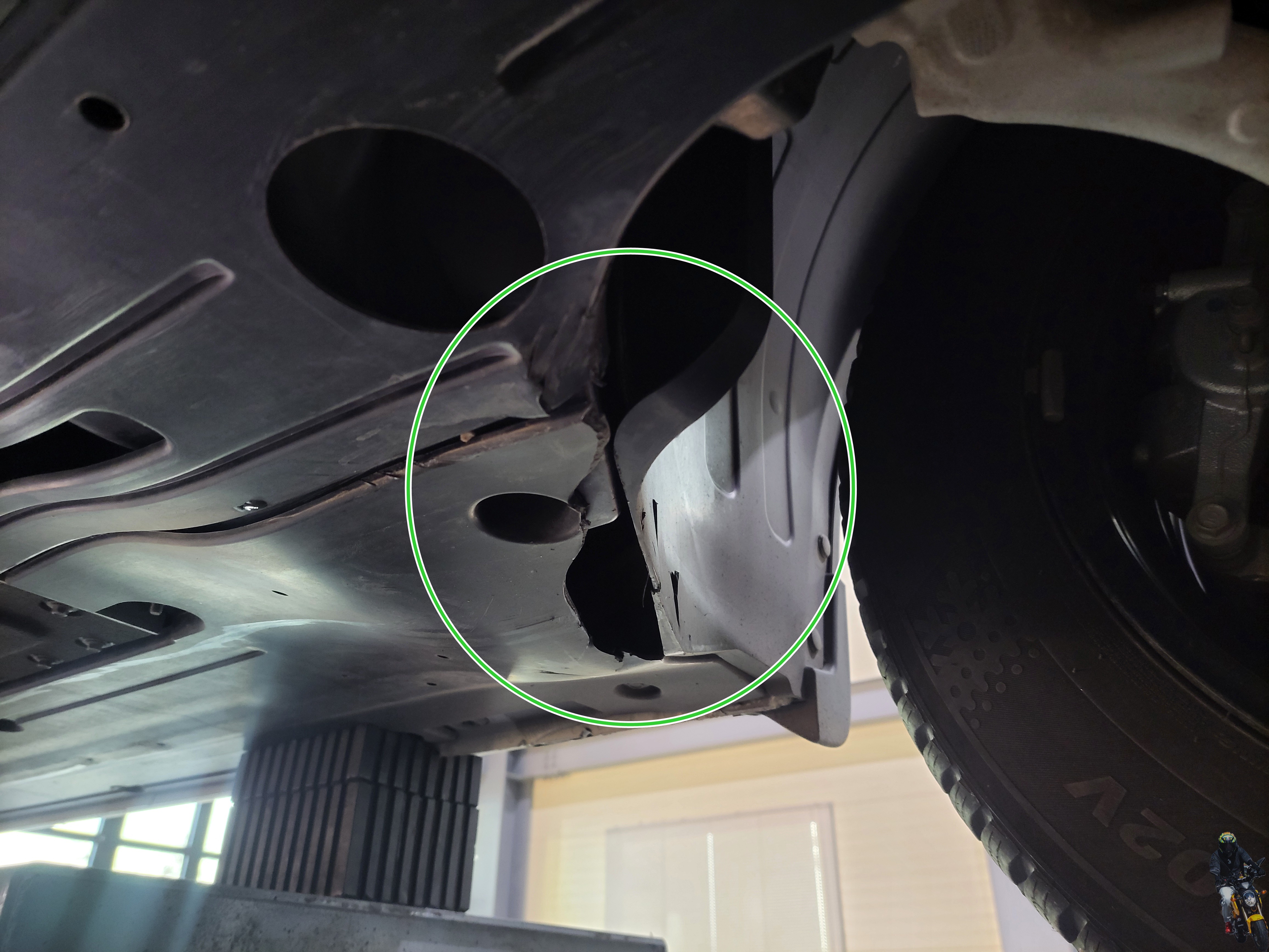 운전석 휠타이어 뒤쪽의 하부 플라스틱 커버도