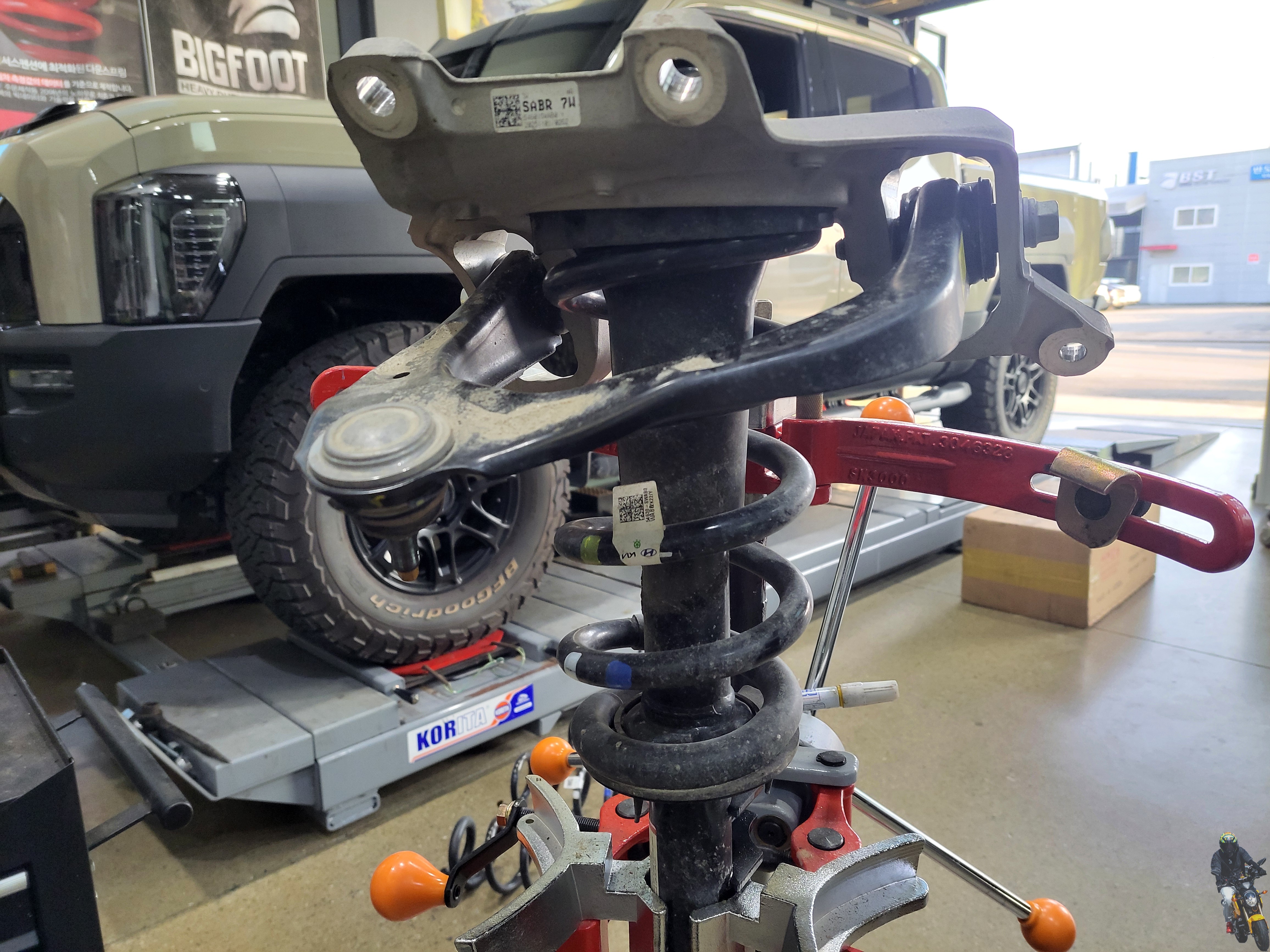 빅풋 강성스프링으로 교체하기 위해 차량에서