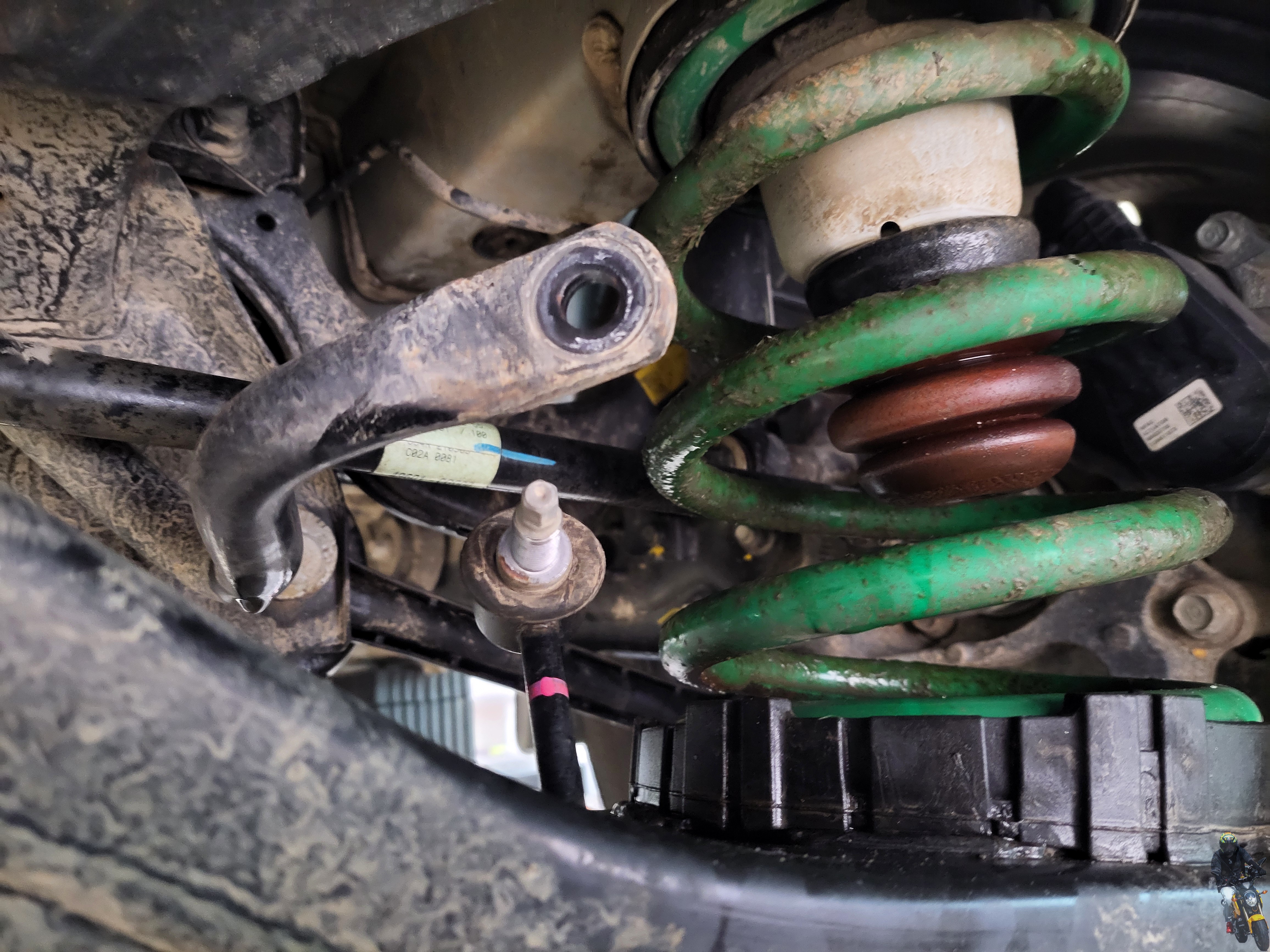 리어 스테빌라이저 링크의 상부 쪽을 탈거하고 있습니다