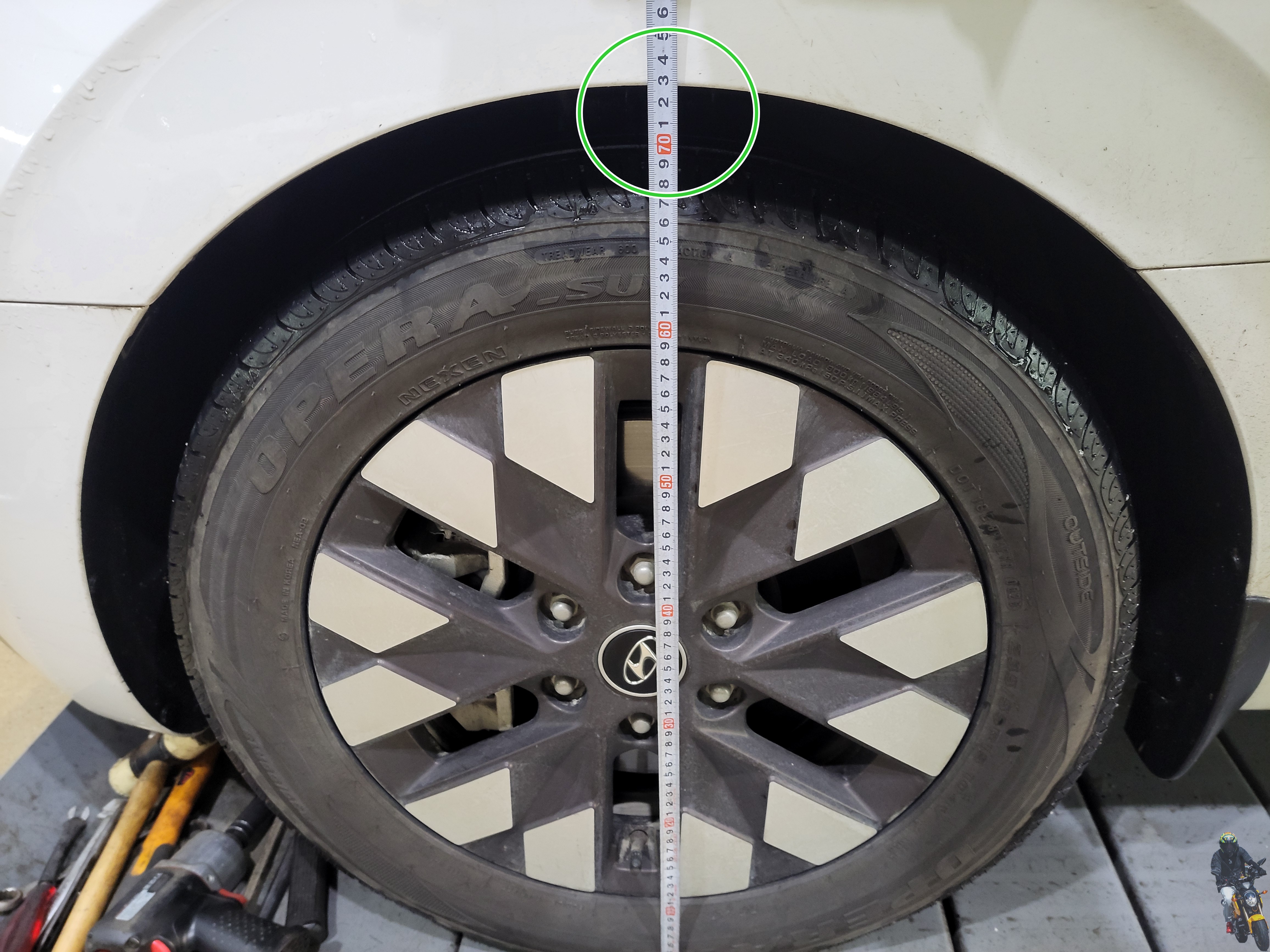 발생되어 있었습니다 차량의 차고가 낮아지면서 휠타이어의