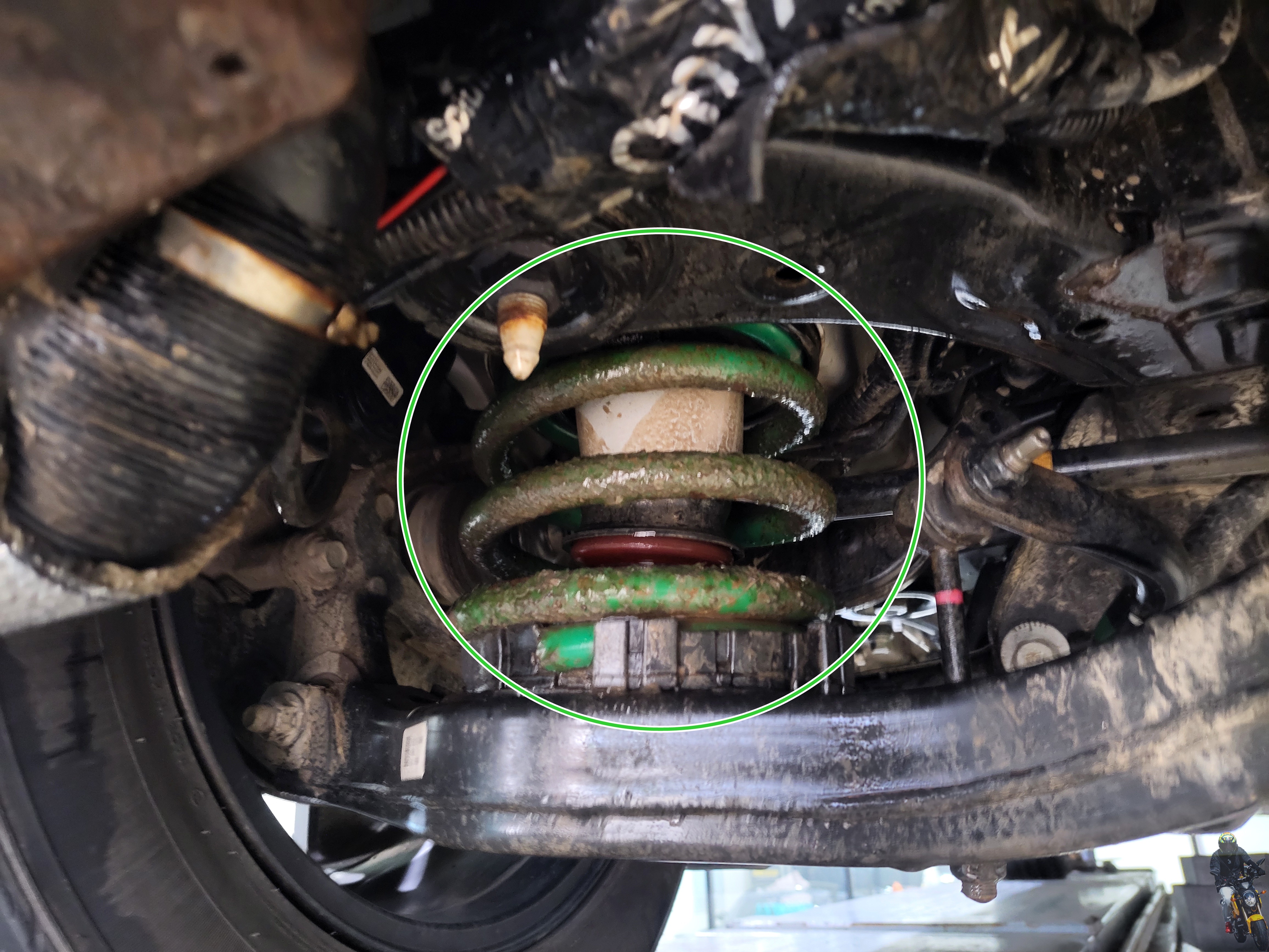 스타리아 차량의 리어 스프링을 확인해 보니 초록색상의