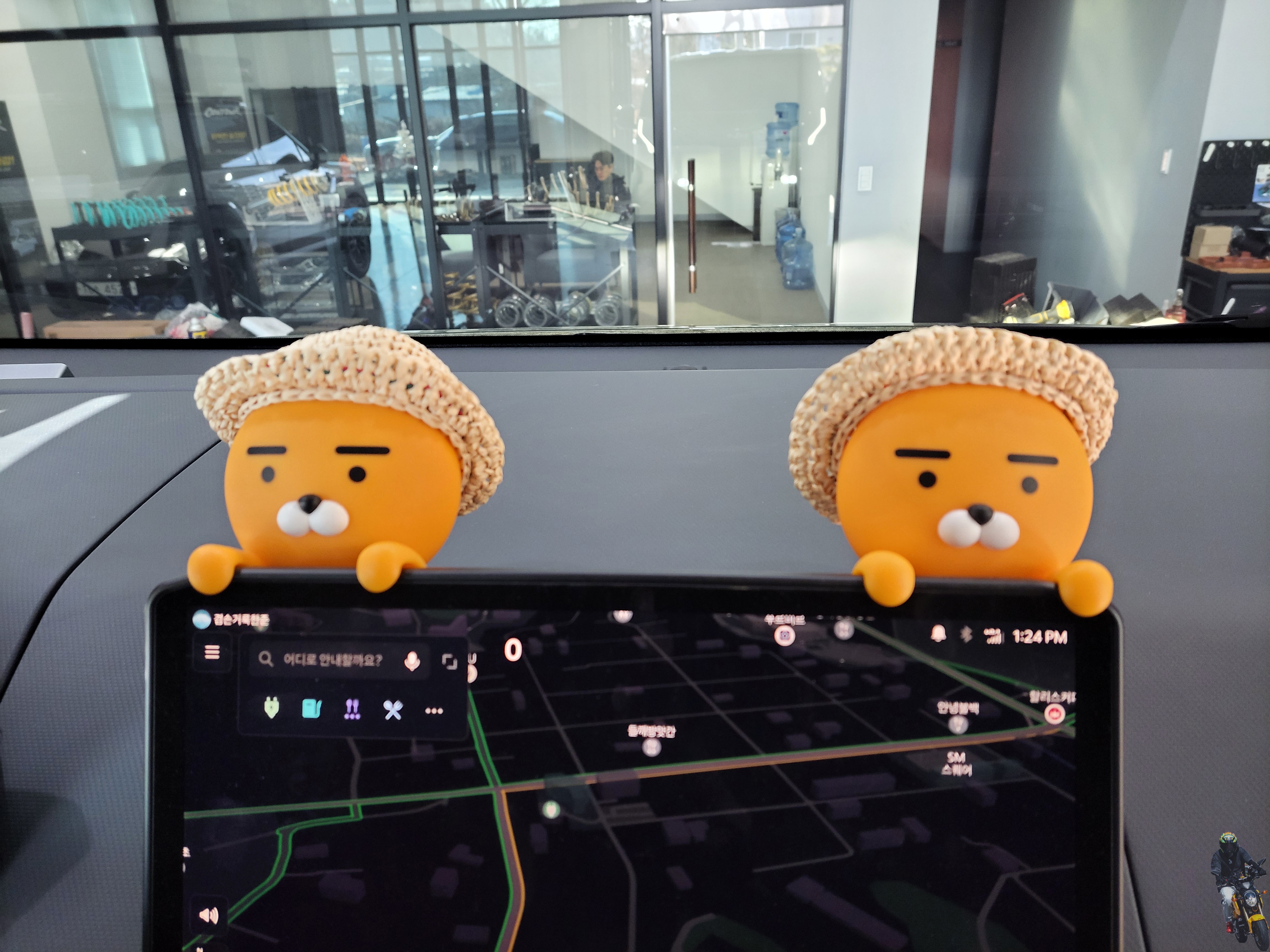 PV5 차량 센터 디스플레이 위로 이렇게 라이언 두 마리가