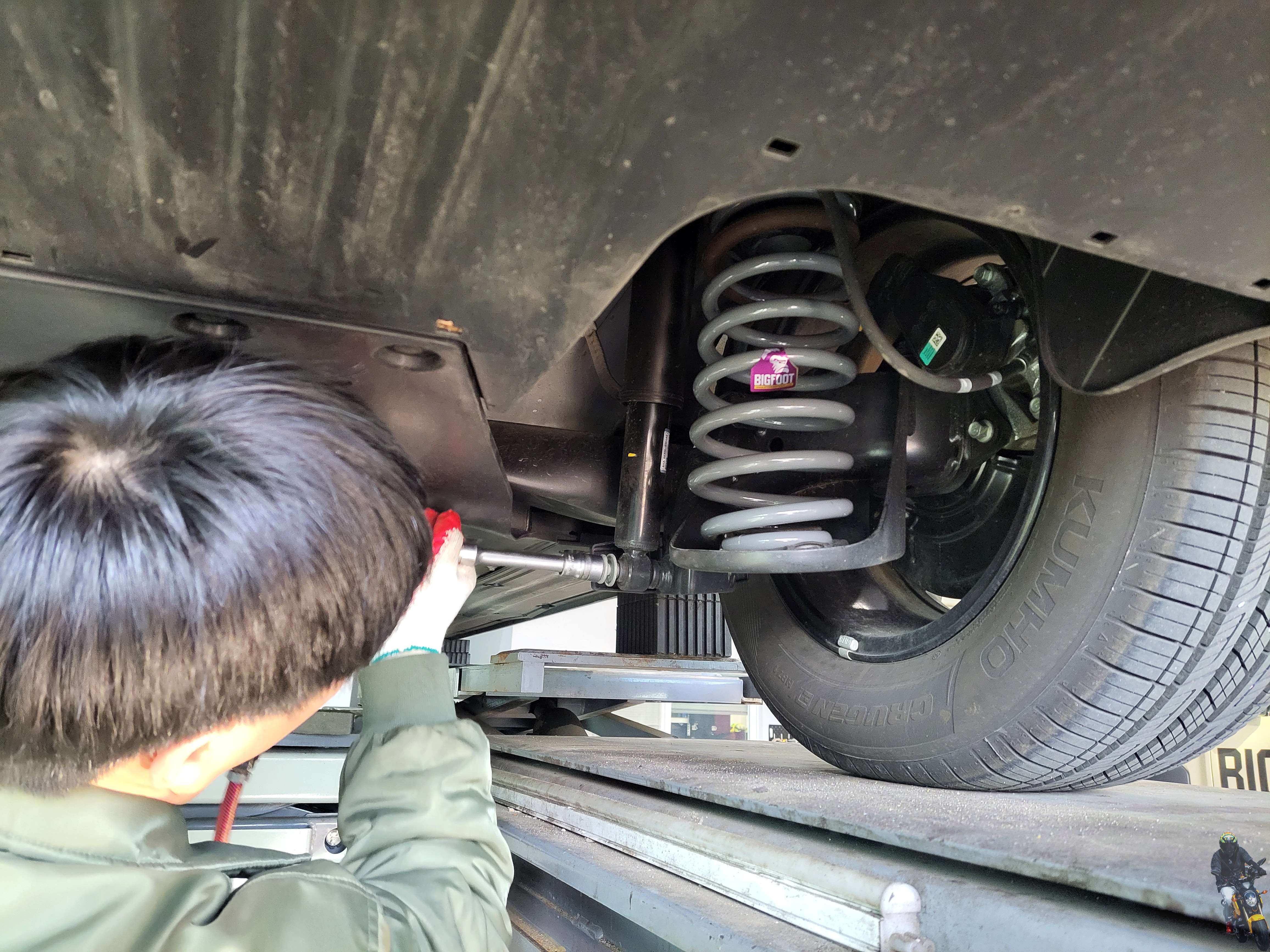 낮아져서 리어 스프링만 빅풋 강성스프링으로 교체하시러 방문해 주셨습니다