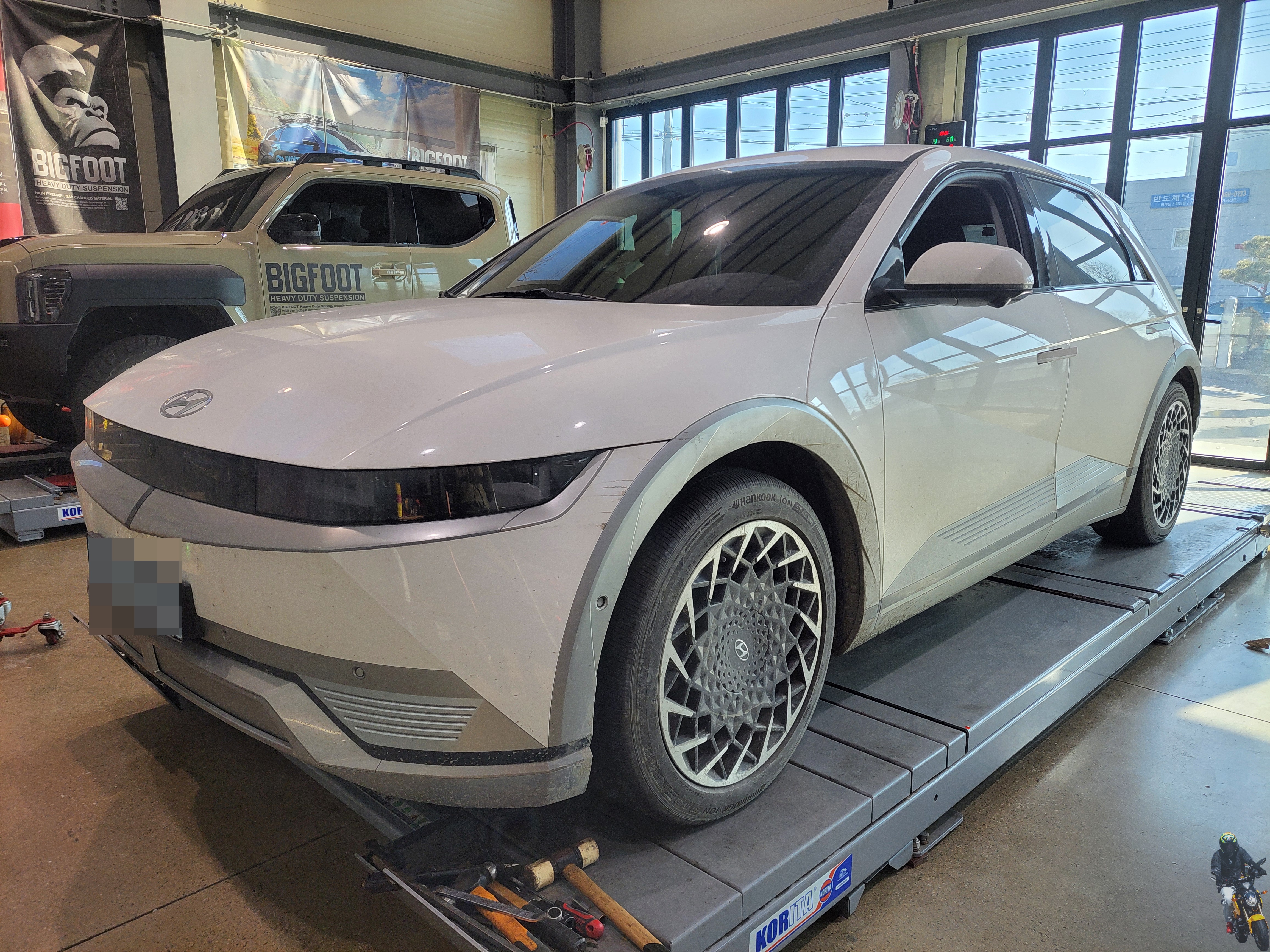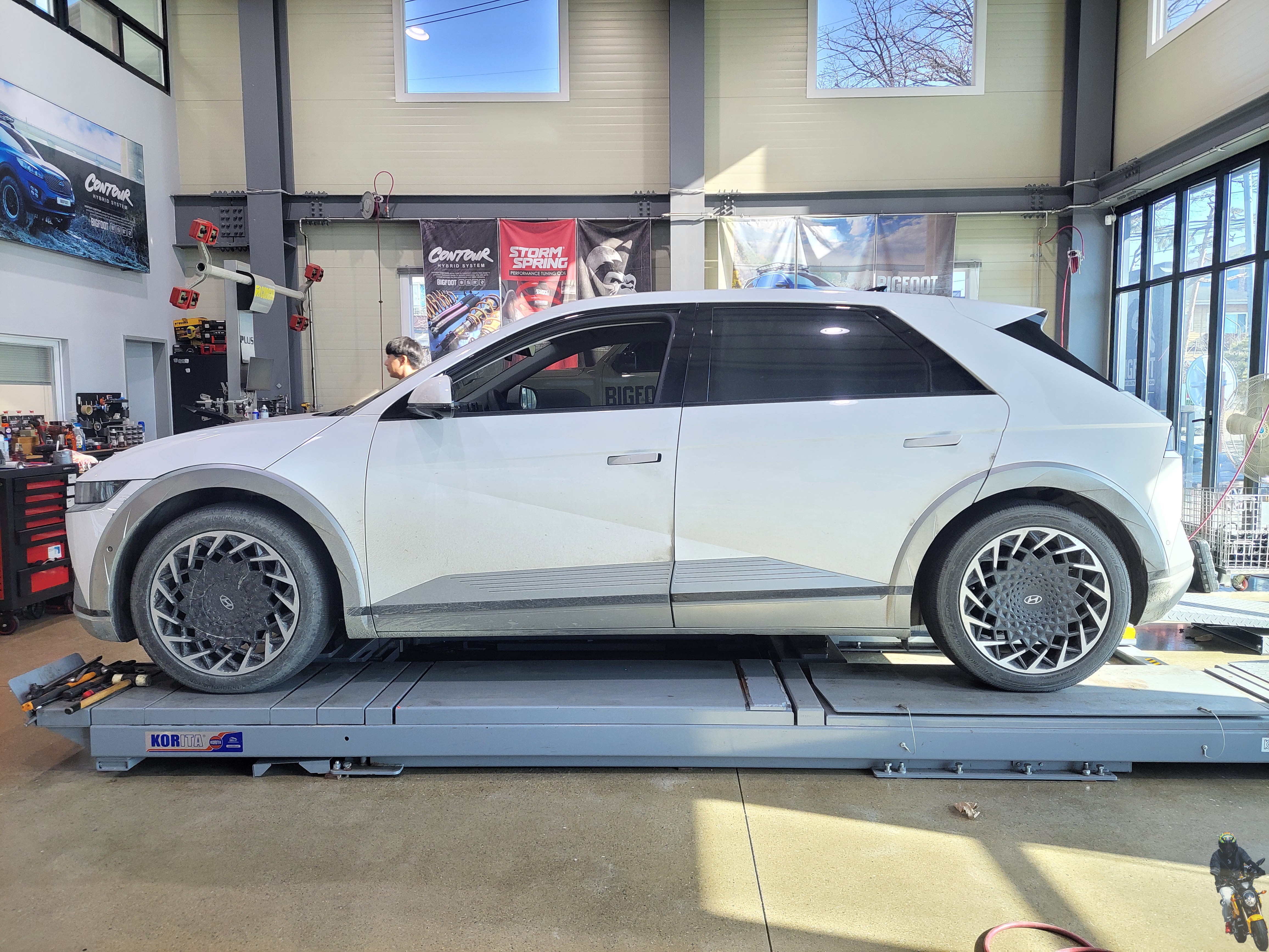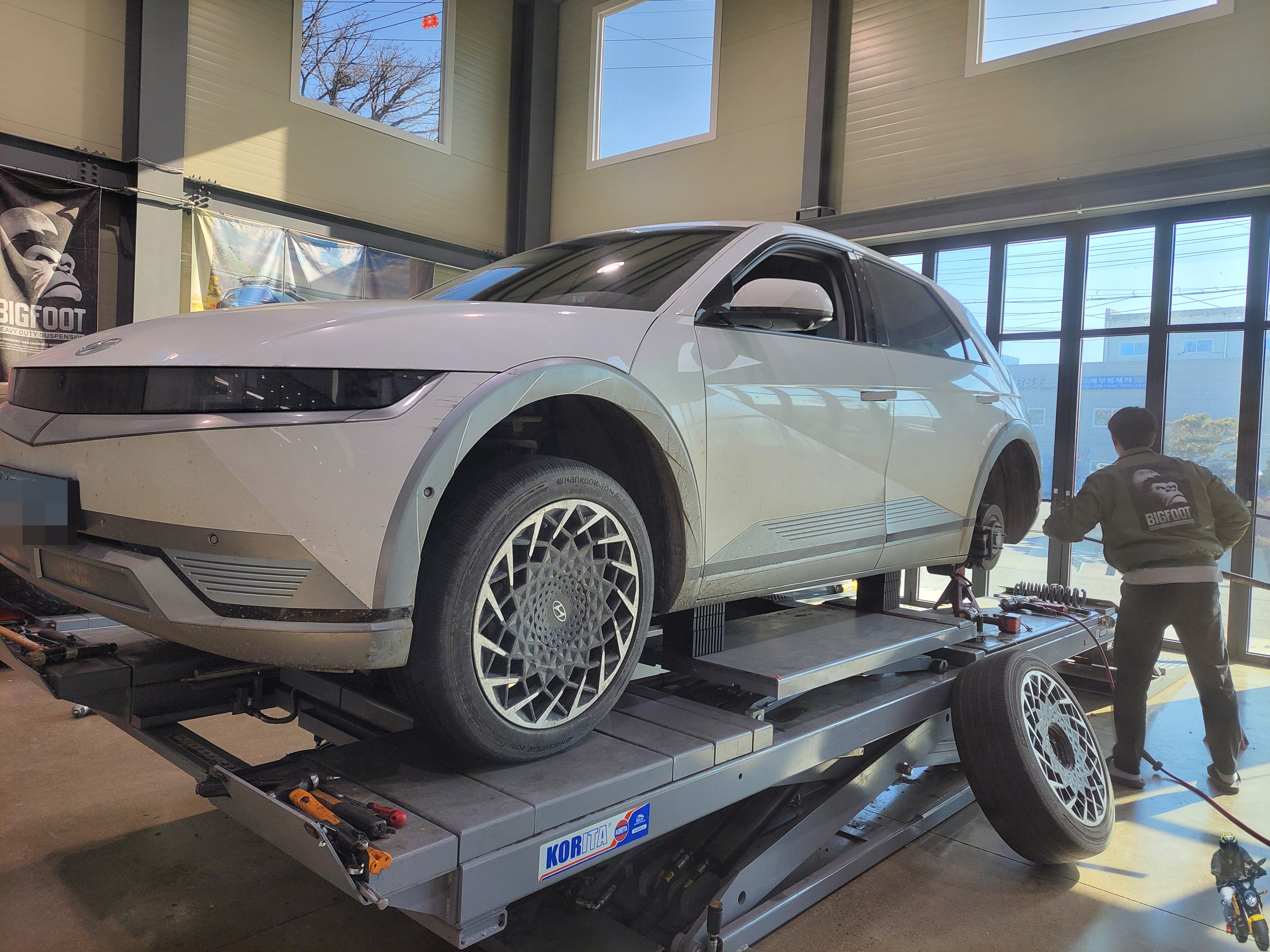이제 빅풋 강성스프링을 아이오닉5 차량에 장착하고 있습니다