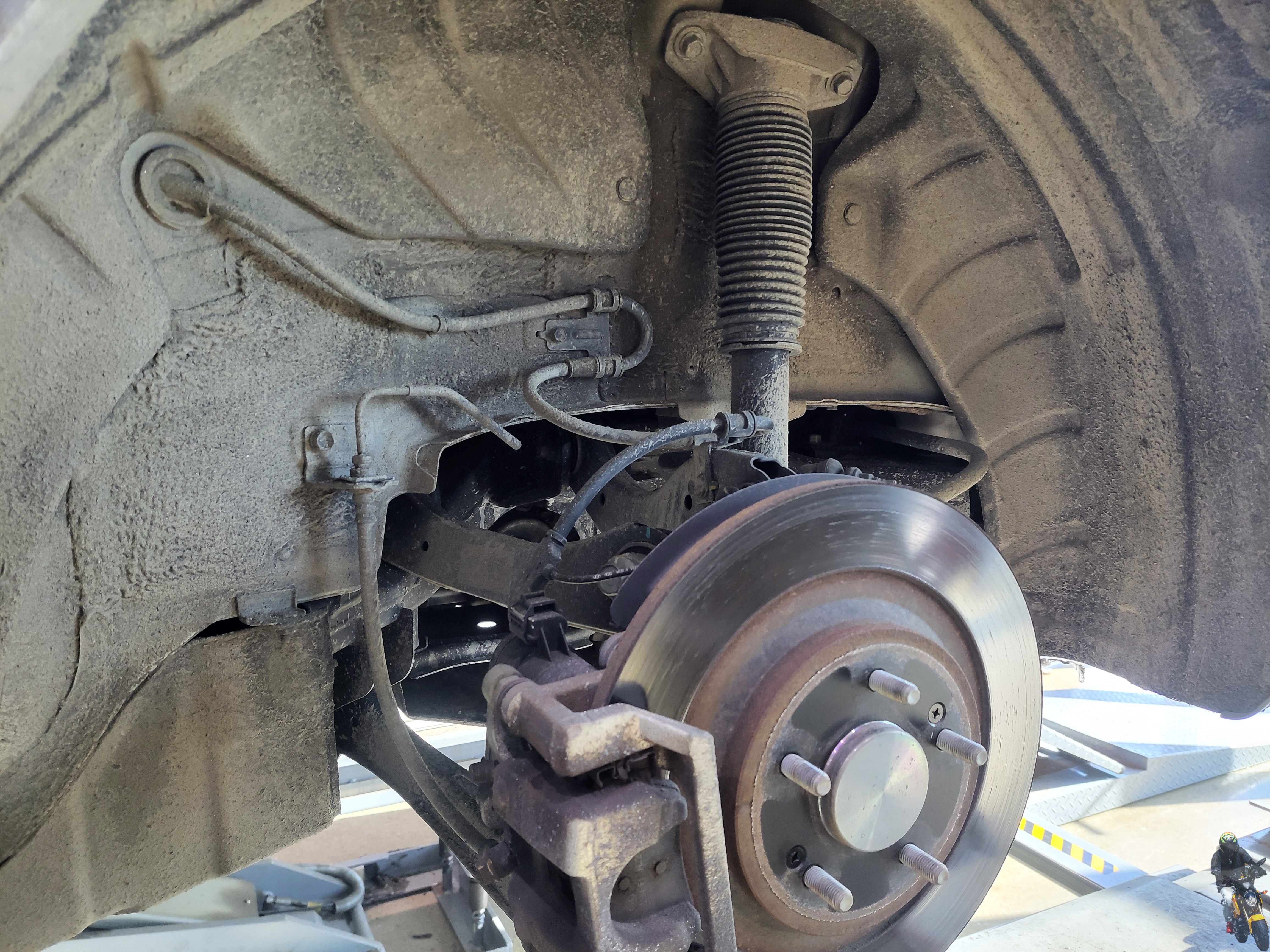 리어 스프링을 교환하기 위해 휠타이어를 탈거하였습니다