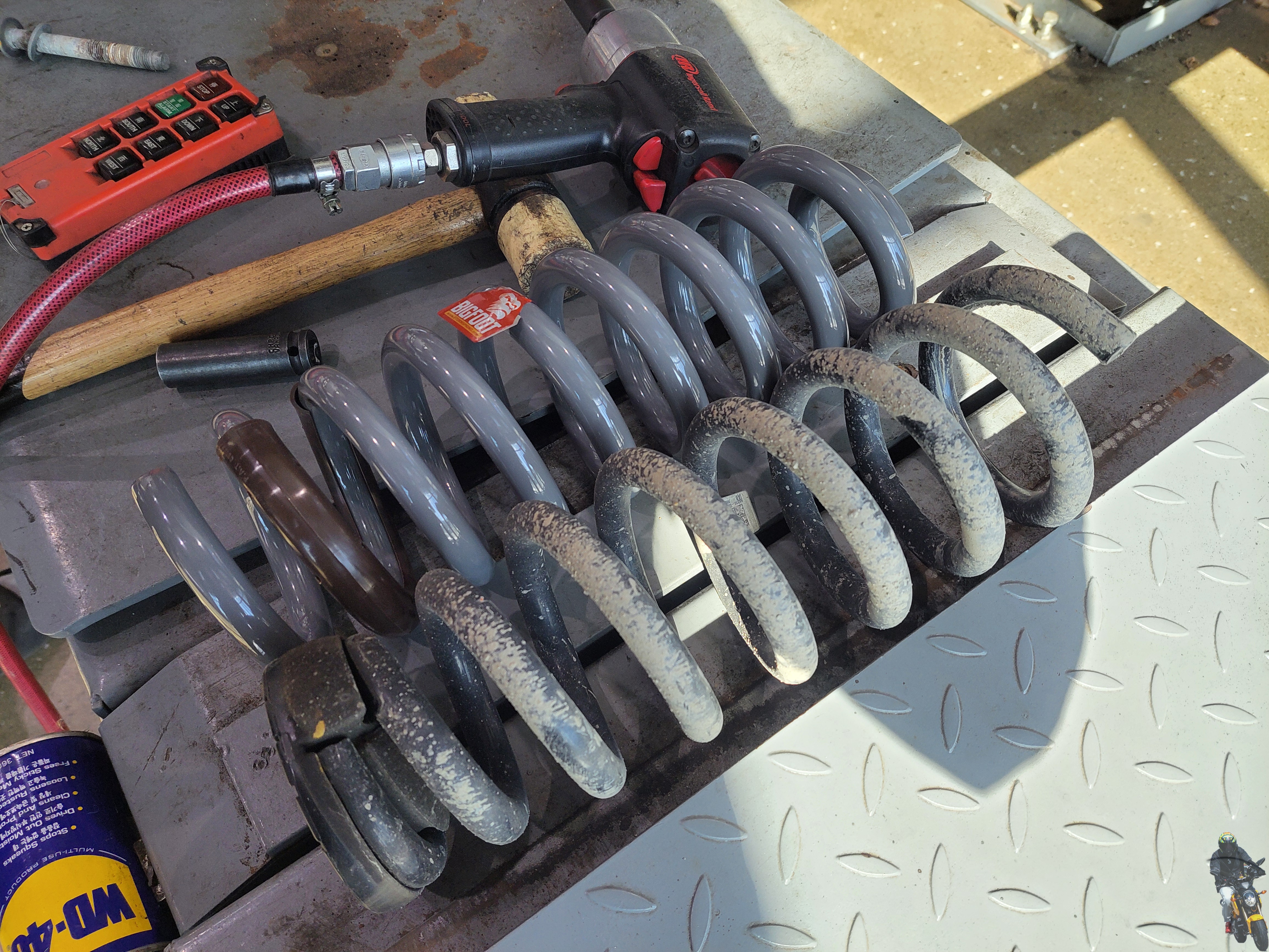 순정 리어스프링을 탈거하고 빅풋스프링과 나란히