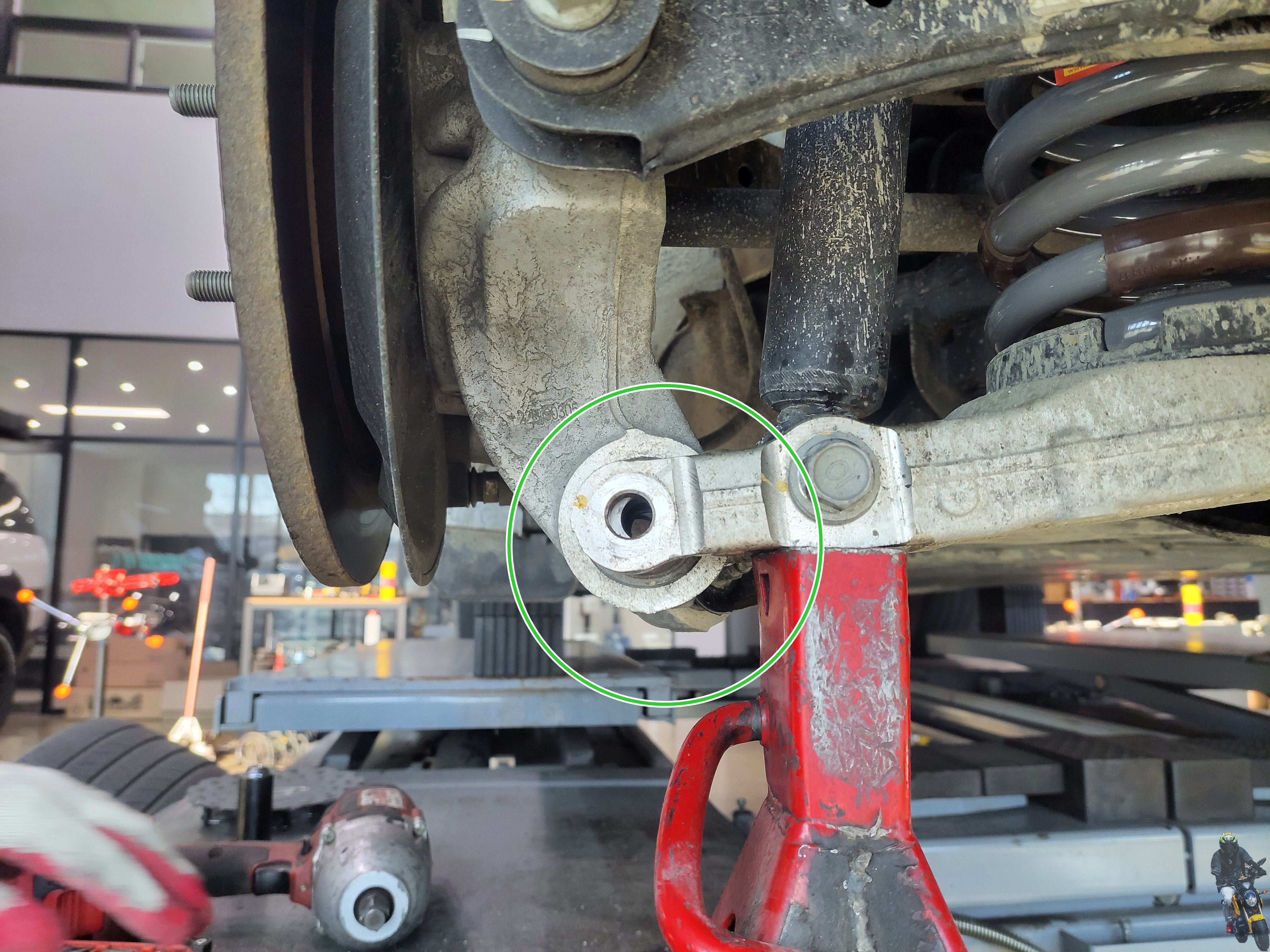 너클 볼 홀을 맞추고 있습니다 볼트를 삽입해