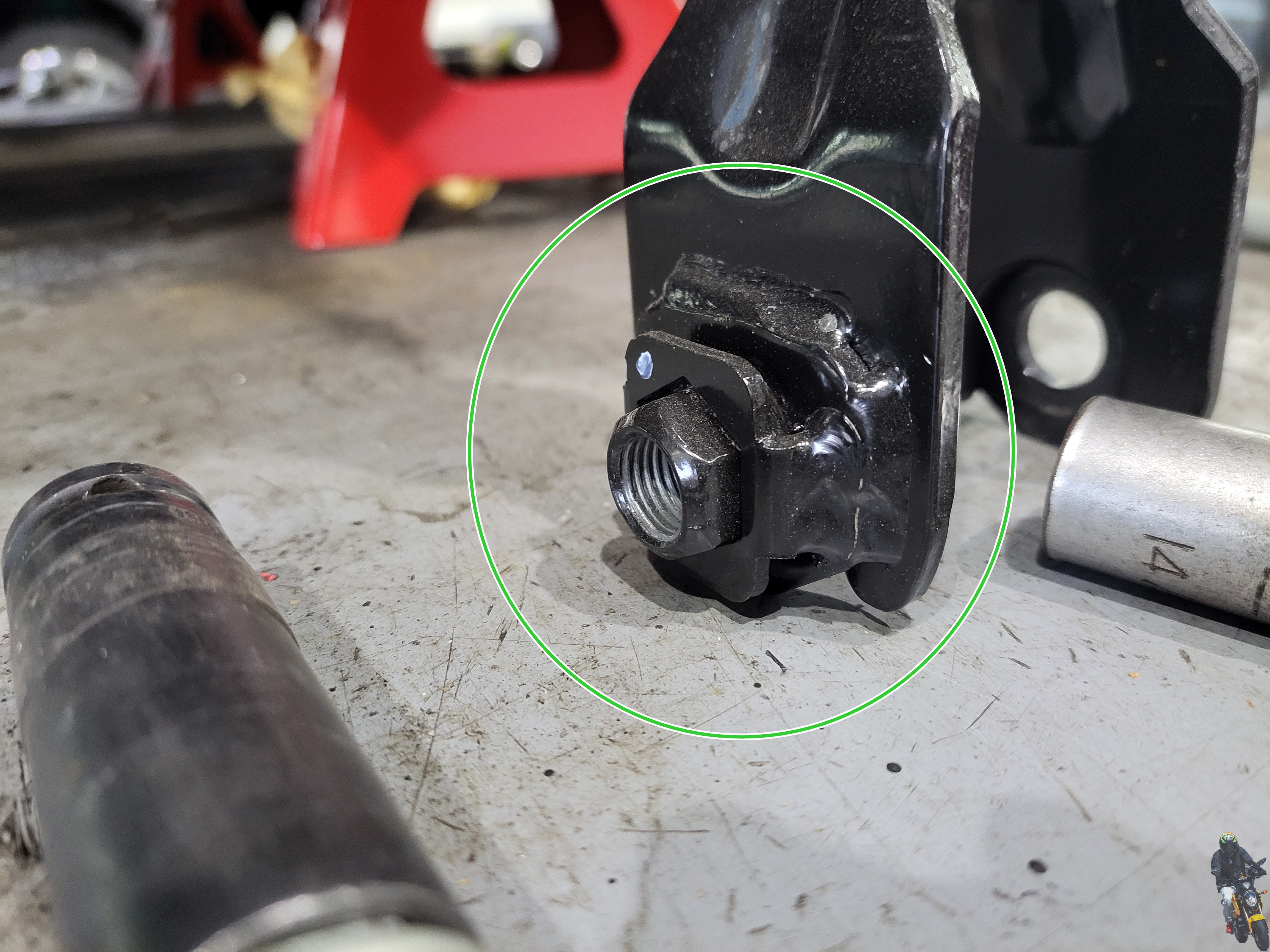 빅풋스프링을 장착하고 쇼바하단 고정볼트를 조이고 있습니다