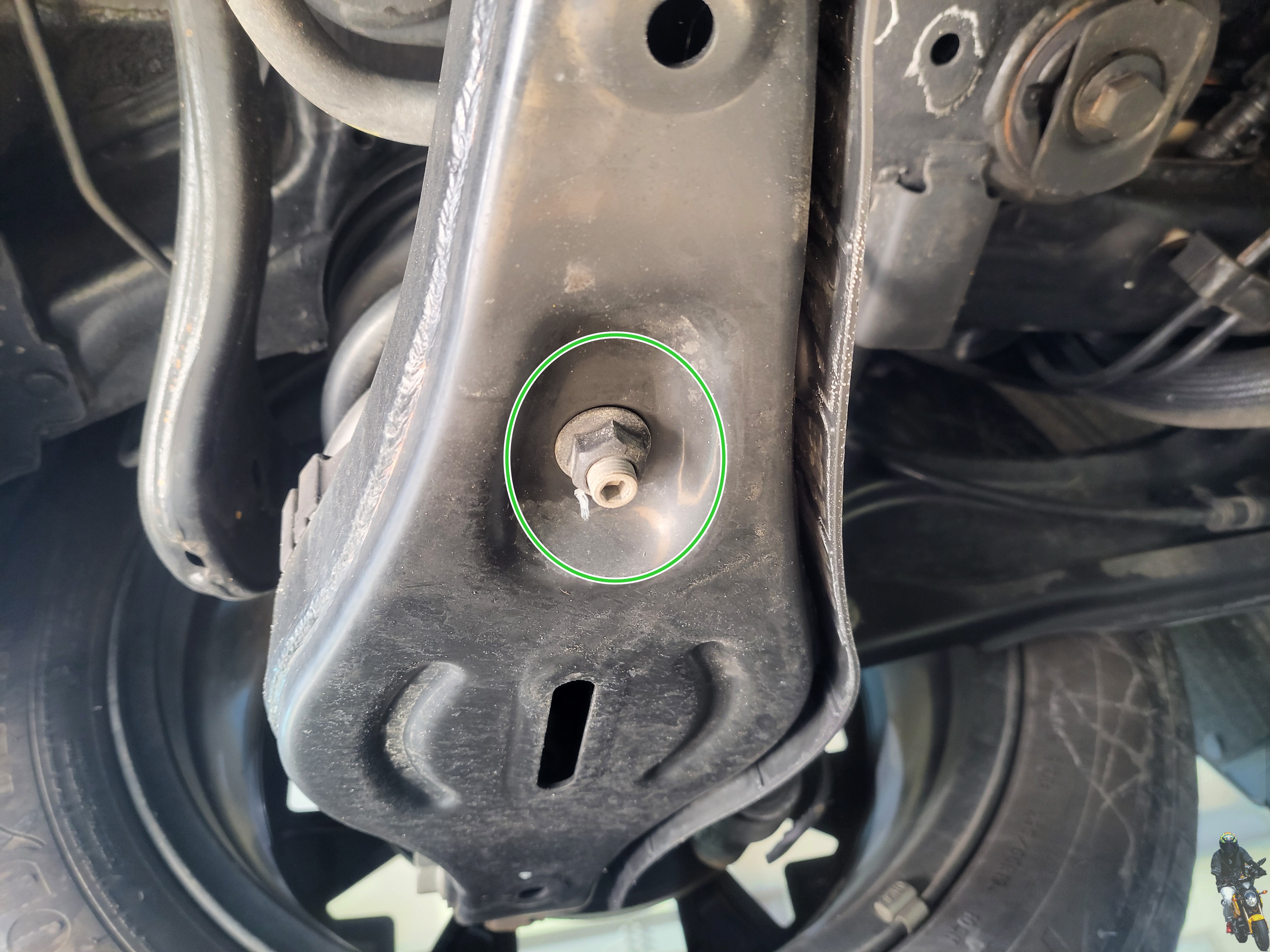 휠타이어를 탈거하고 로우암과 너클의 고정부위를 탈거했습니다
