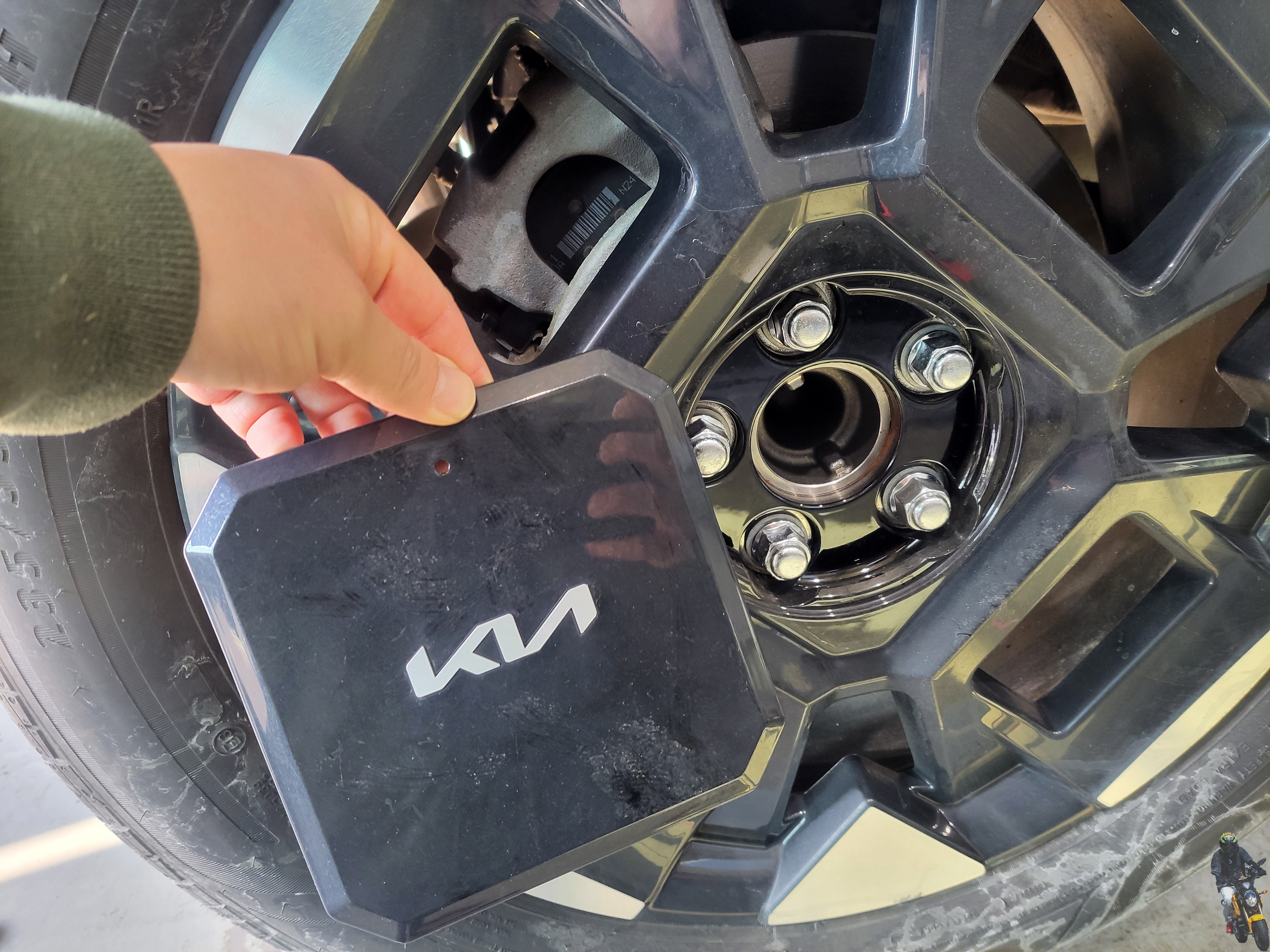 휠타이어를 탈거하기 위해 휠캡을 탈거하였습니다