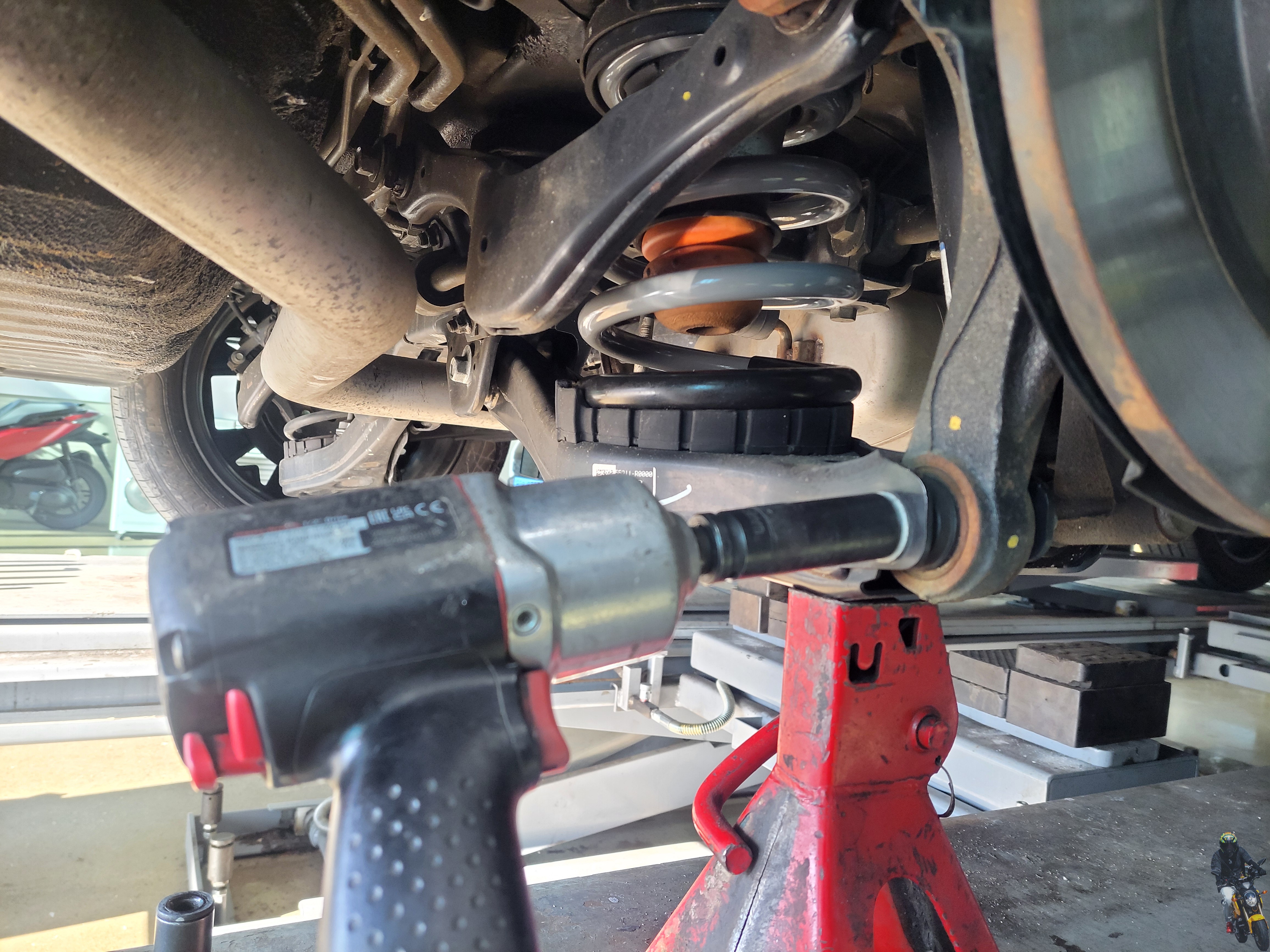 리어 차고가 낮아있었고 추후 견인장치 장착으로 리어 쪽 하중이 더 가해질