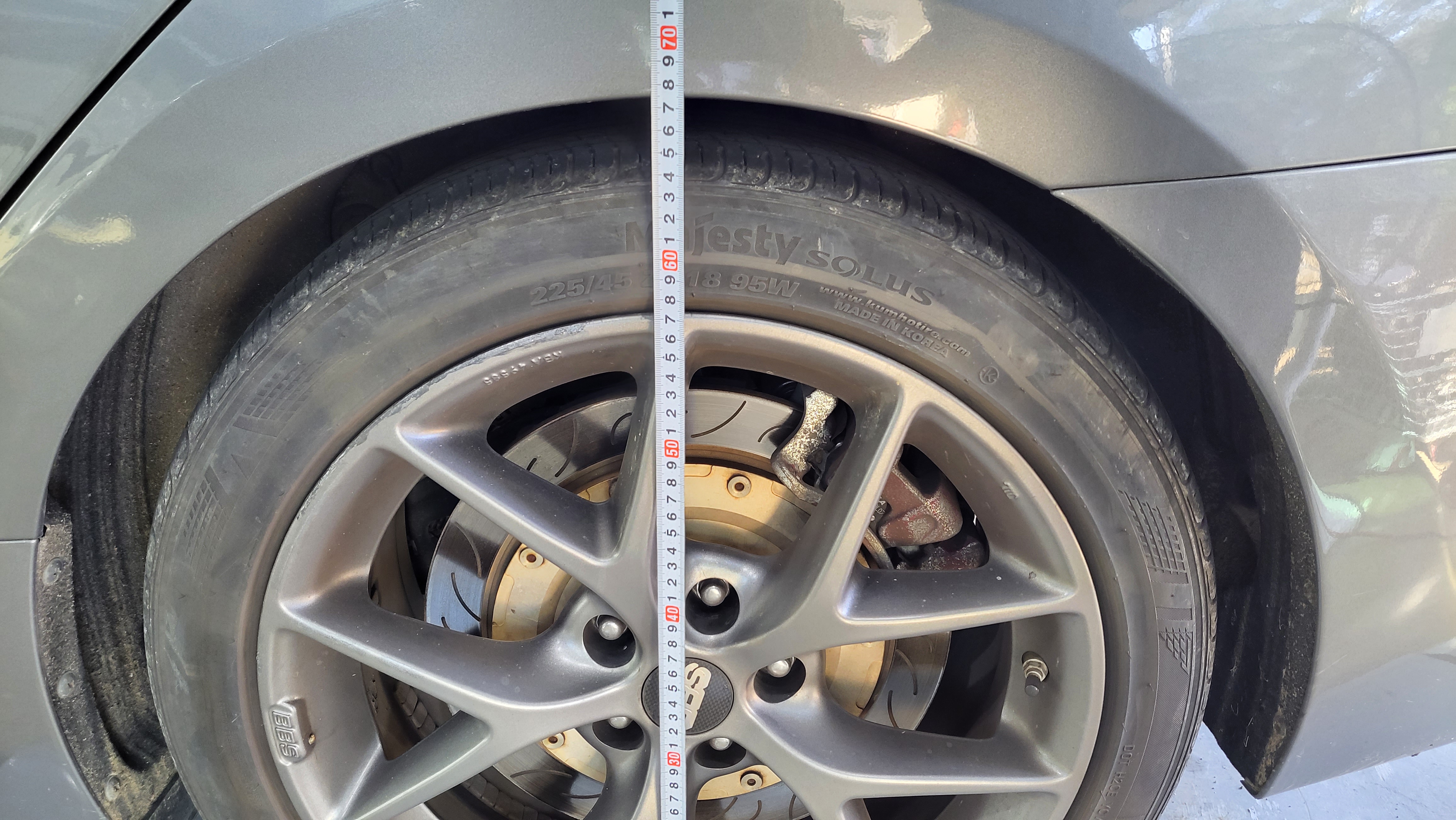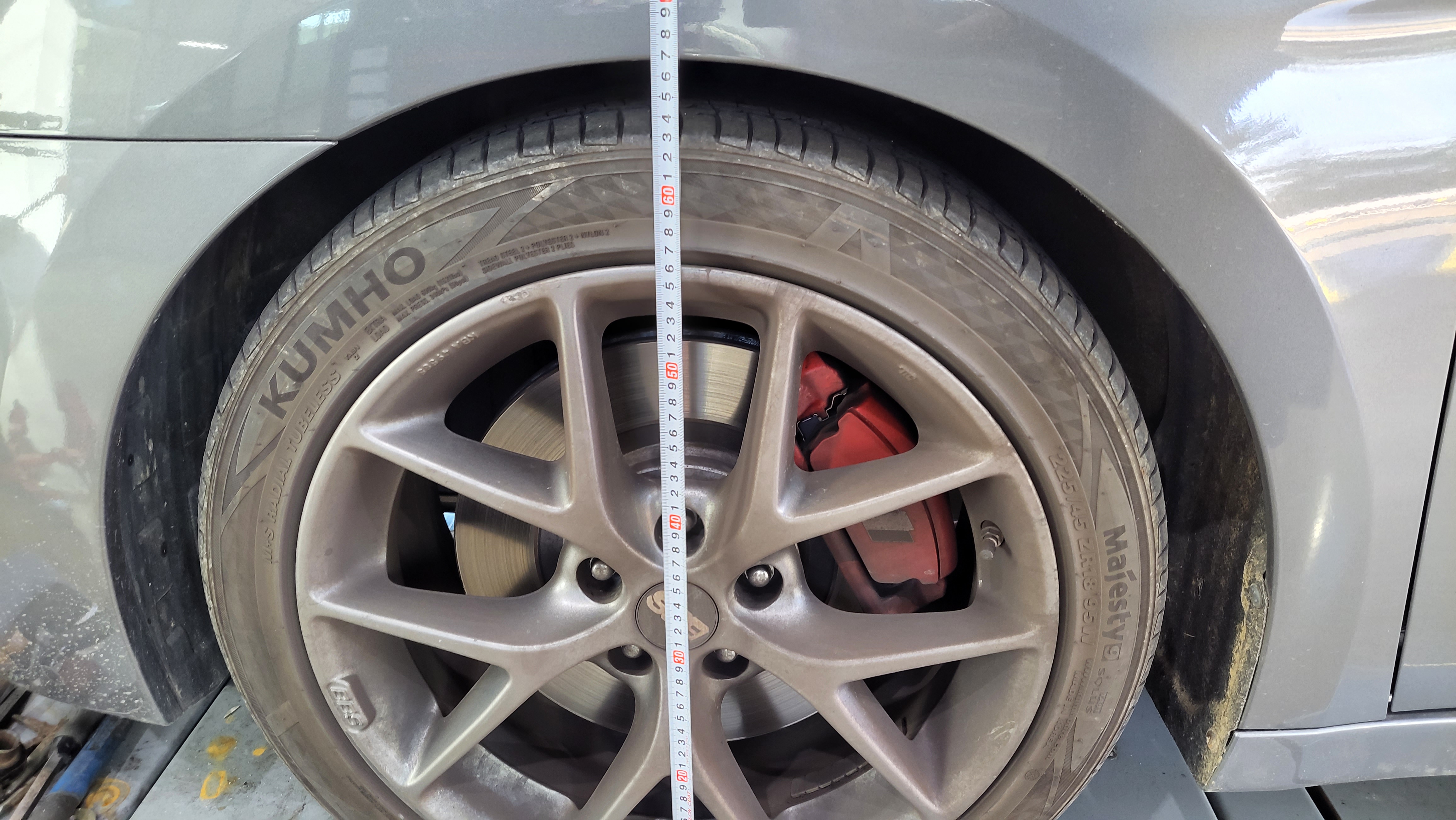 현대자동차 i40 승차감강성스프링 장착 후륜 차고 675mm에서 693mm로 18mm 차고 상승 하였습니다