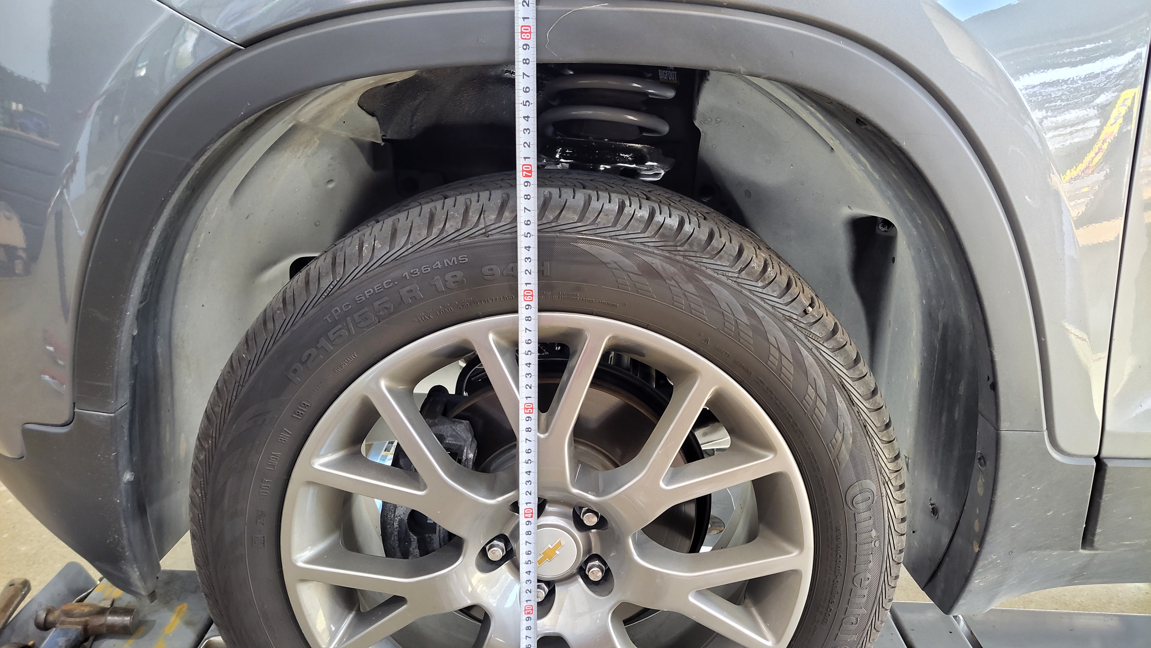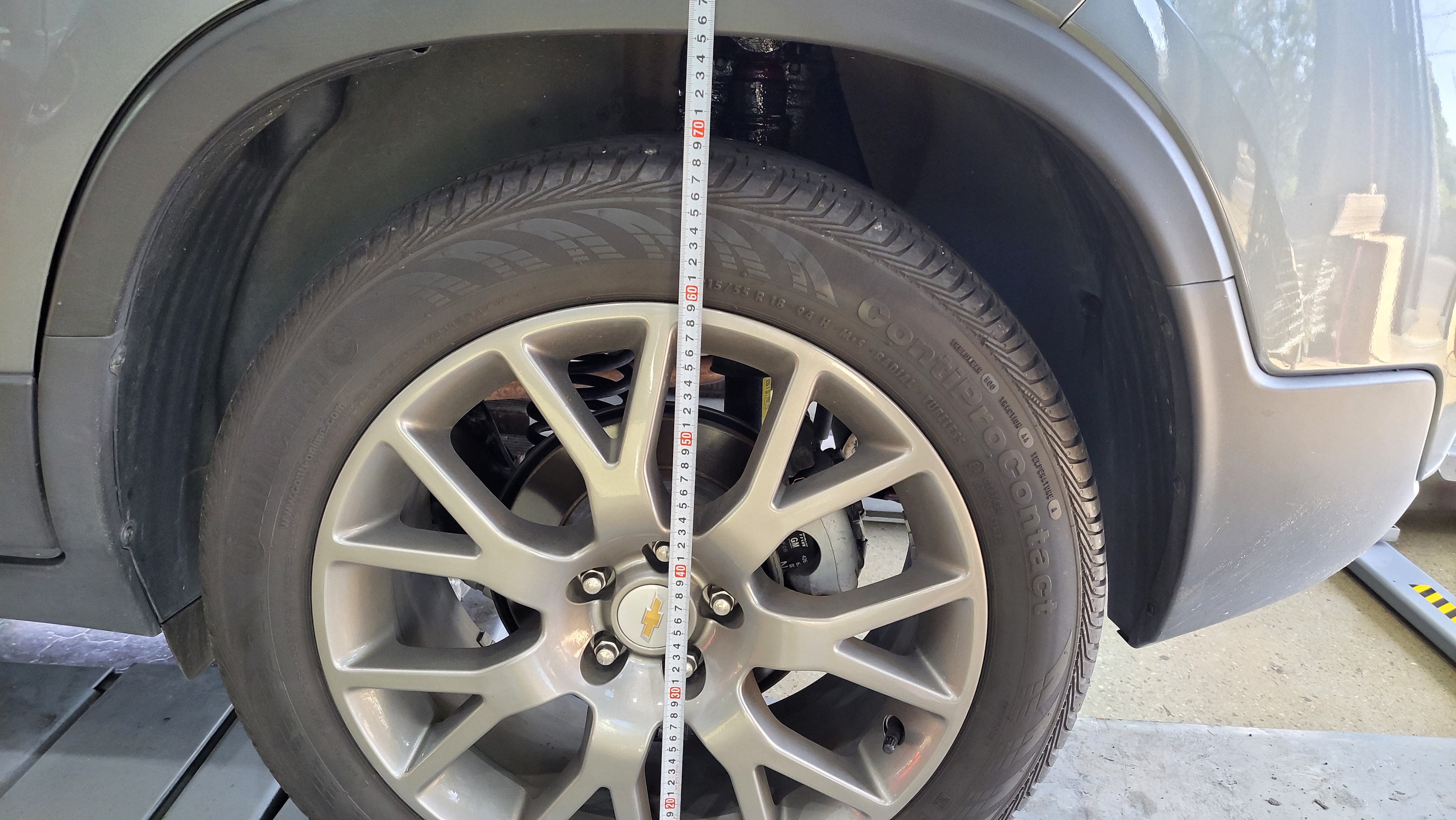 쉐보레 트랙스 리프트업 전륜 차고 743mm에서 780mm로 37mm 차고 상승하였습니다
