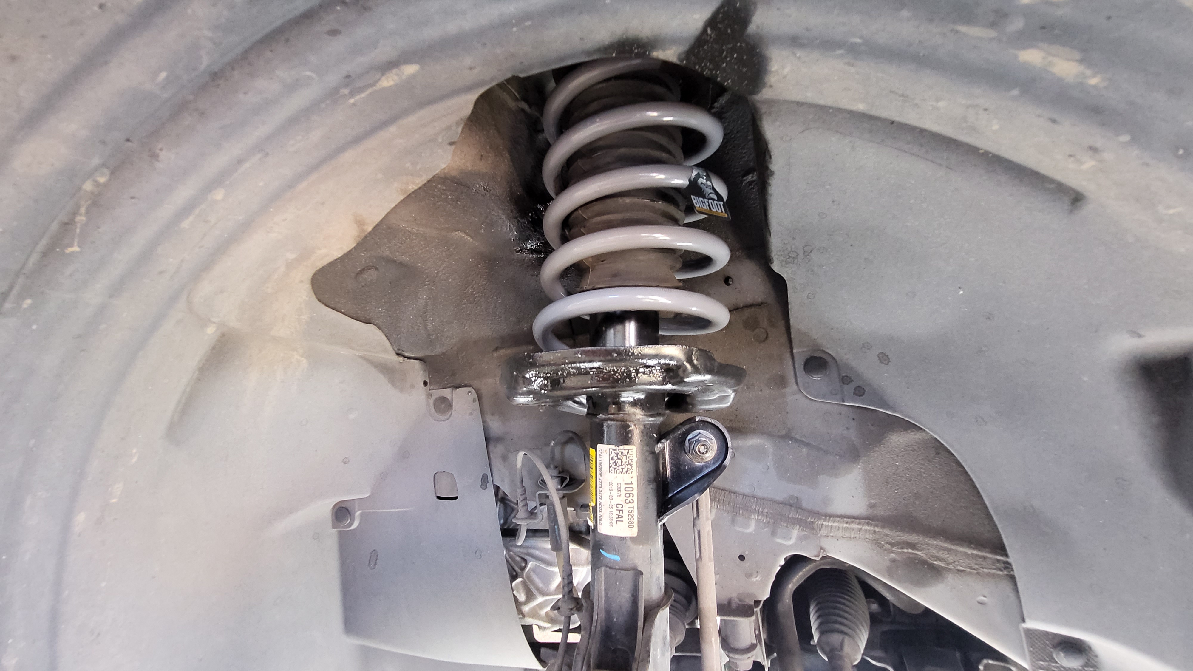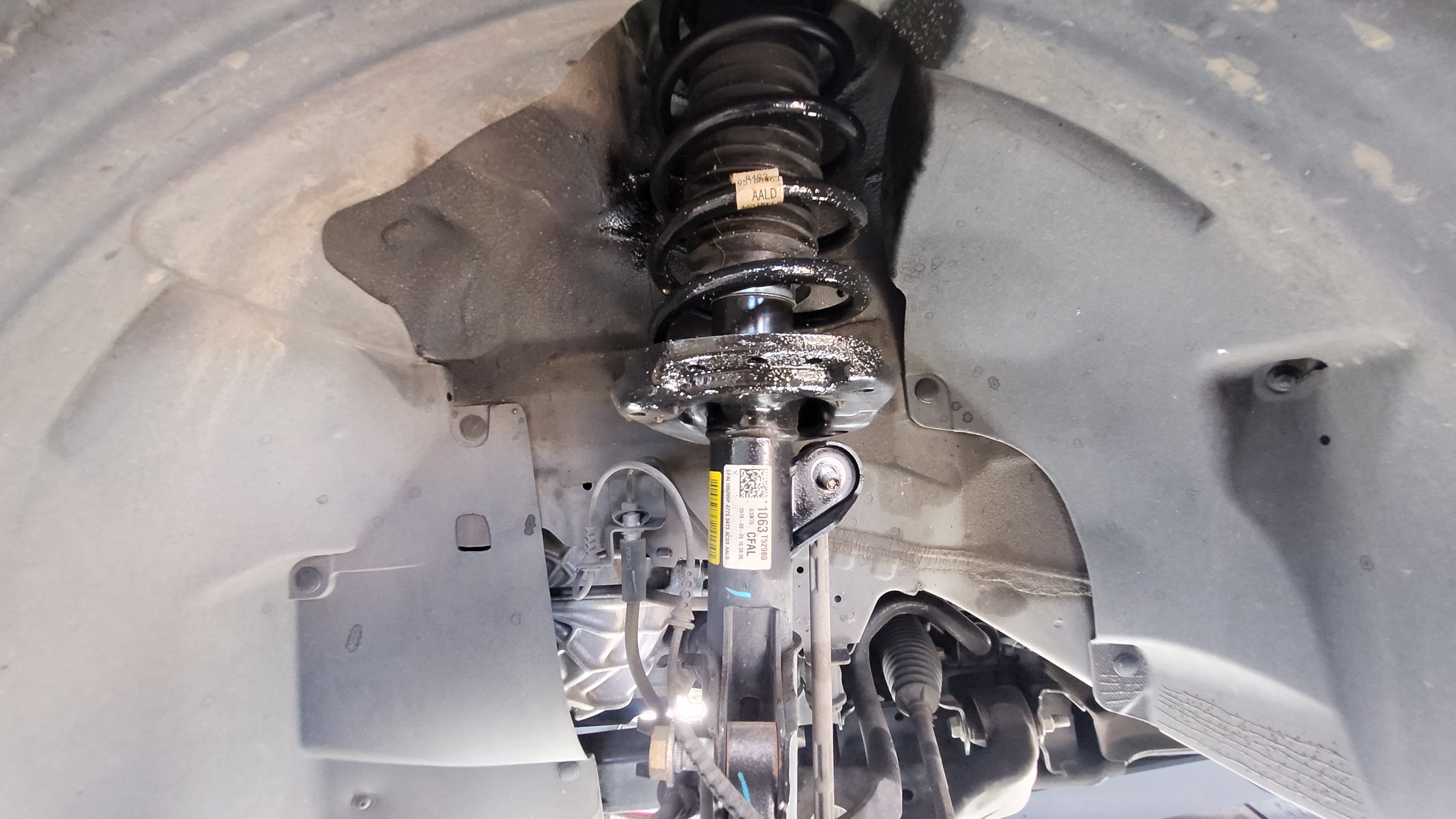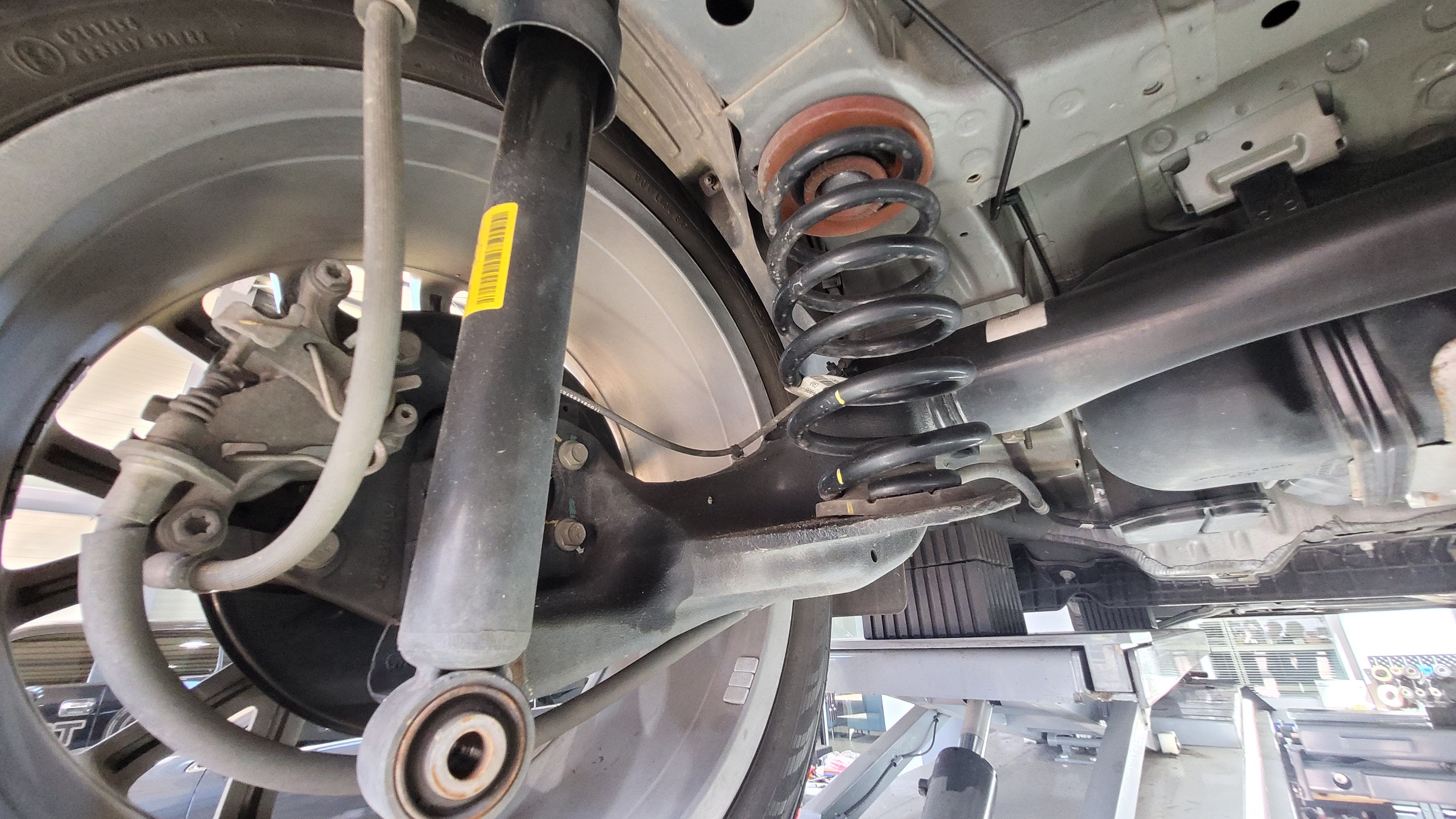 쉐보레 트랙스 차량의 전륜 쇼바스프링 조립을 마치고 차량에 장착을 합니다
