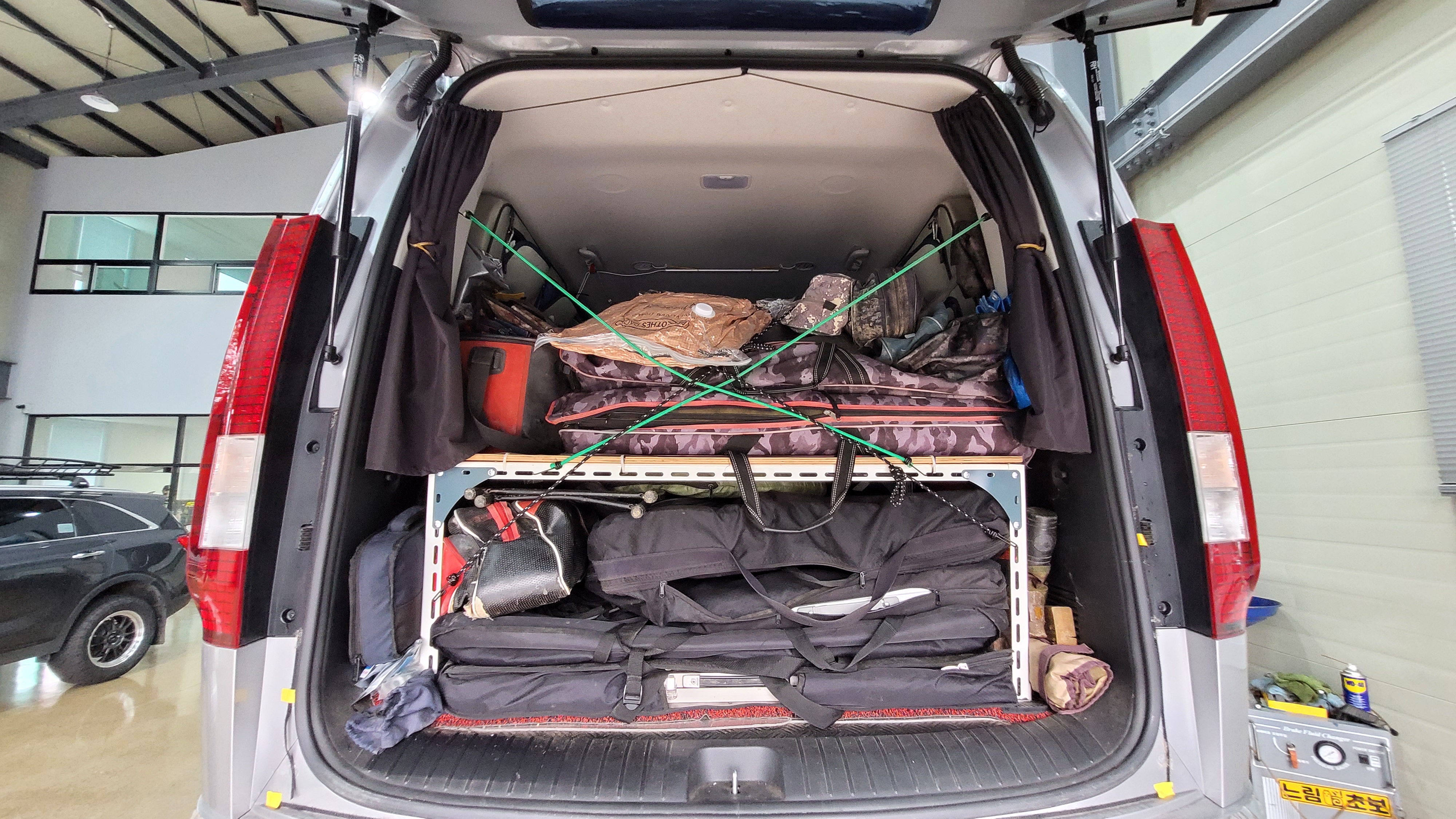 현대자동차 스타리아 4WD 차량의 트렁크를 열어보니 이렇게 낚시 등등 짐이 한가득