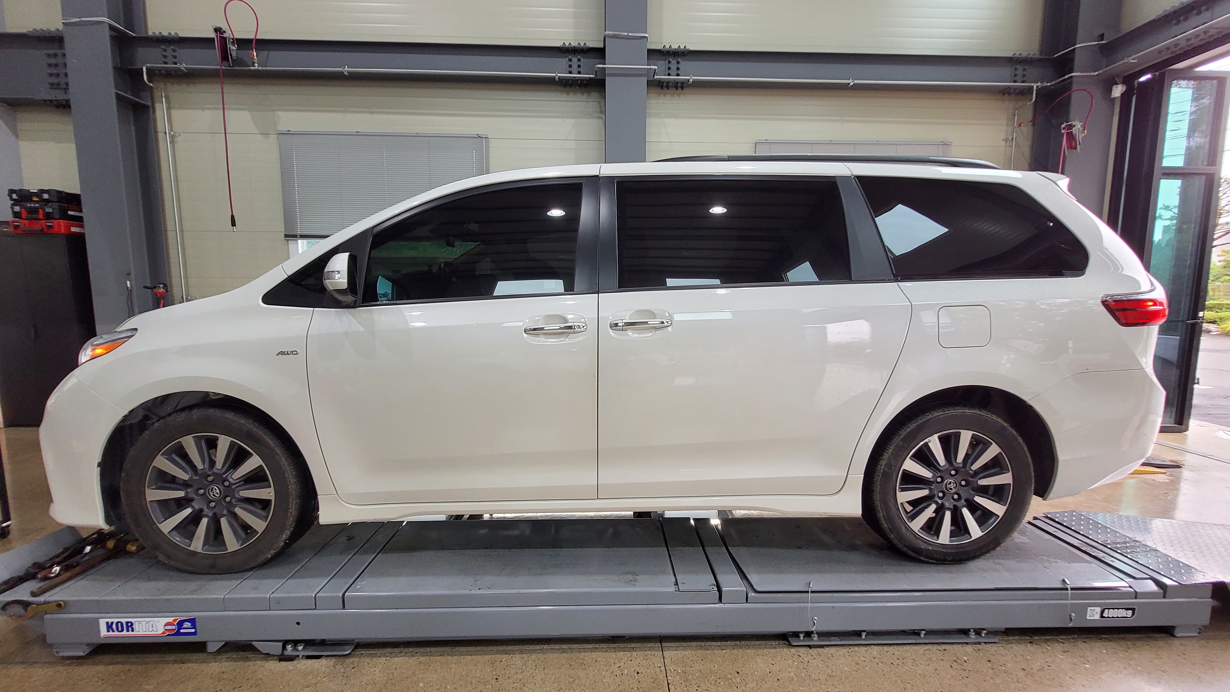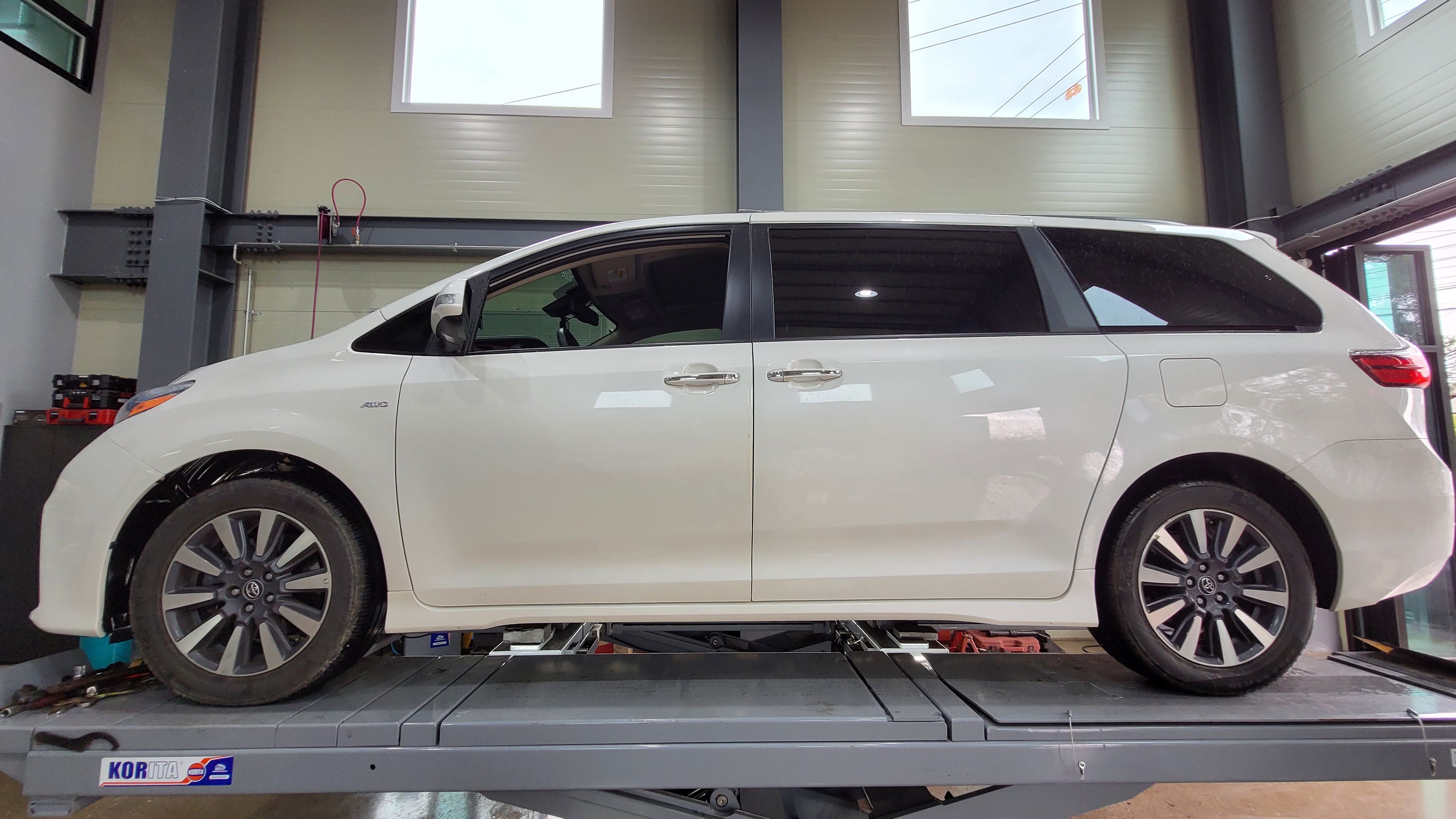 도요타 시에나 차량의 후륜 모든 작업이 완료되었습니다